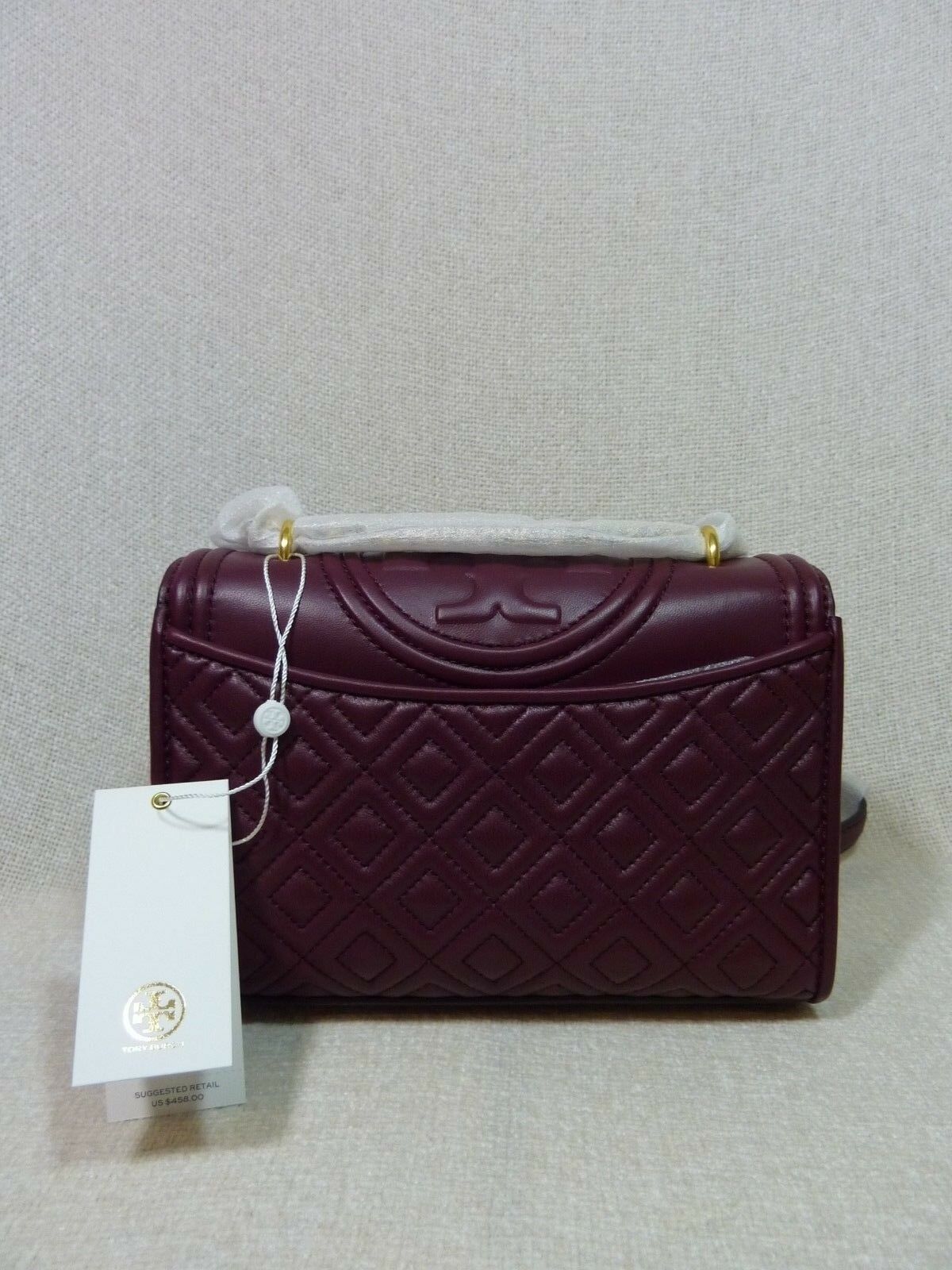 NEW Tory Burch Imperial Garnet Leather Small Fleming Convertible Bag $458