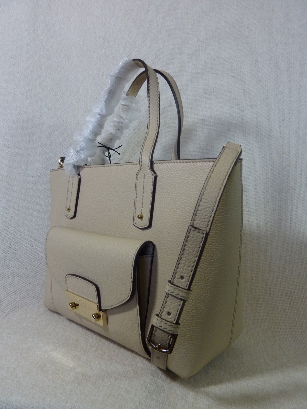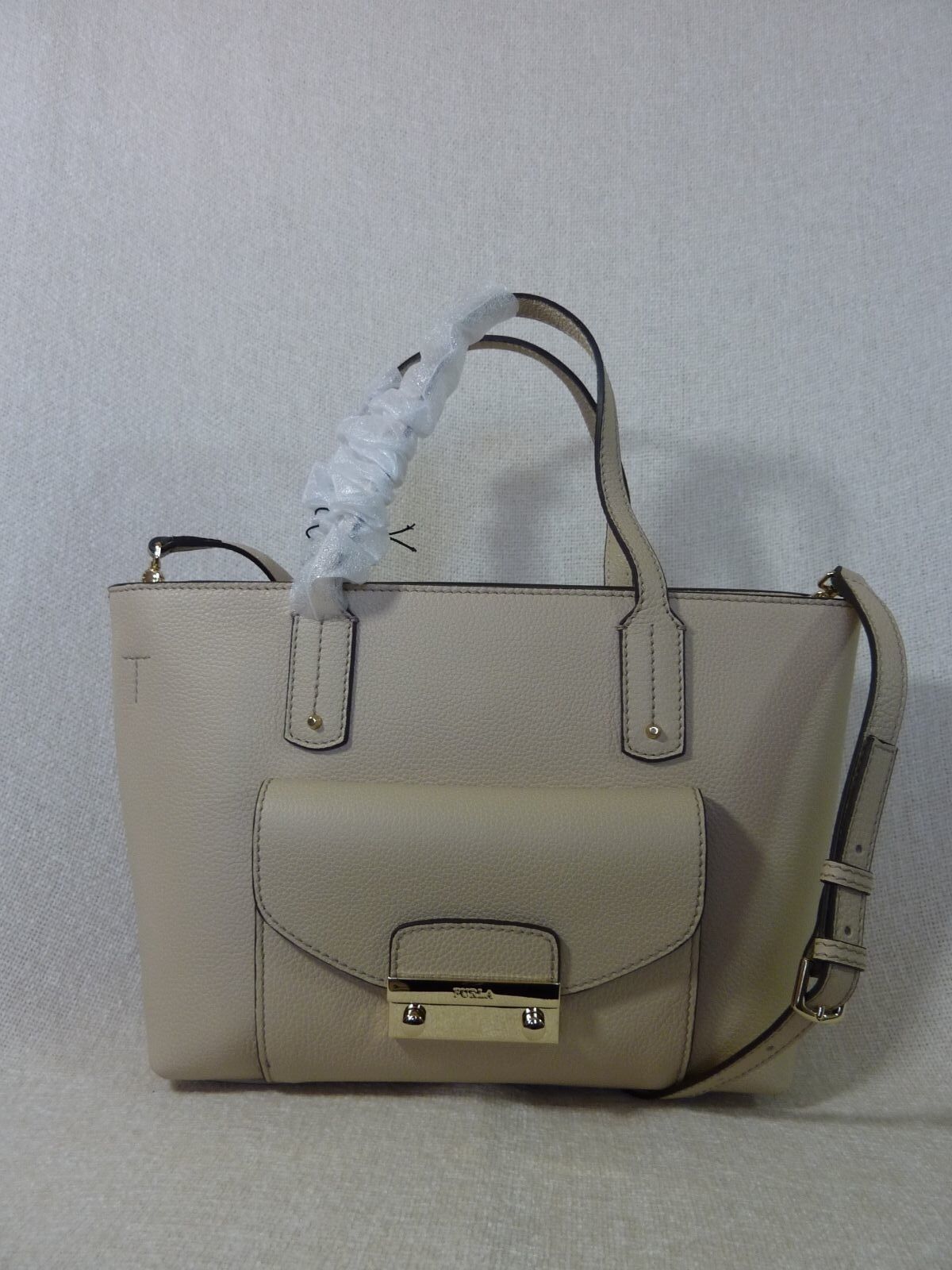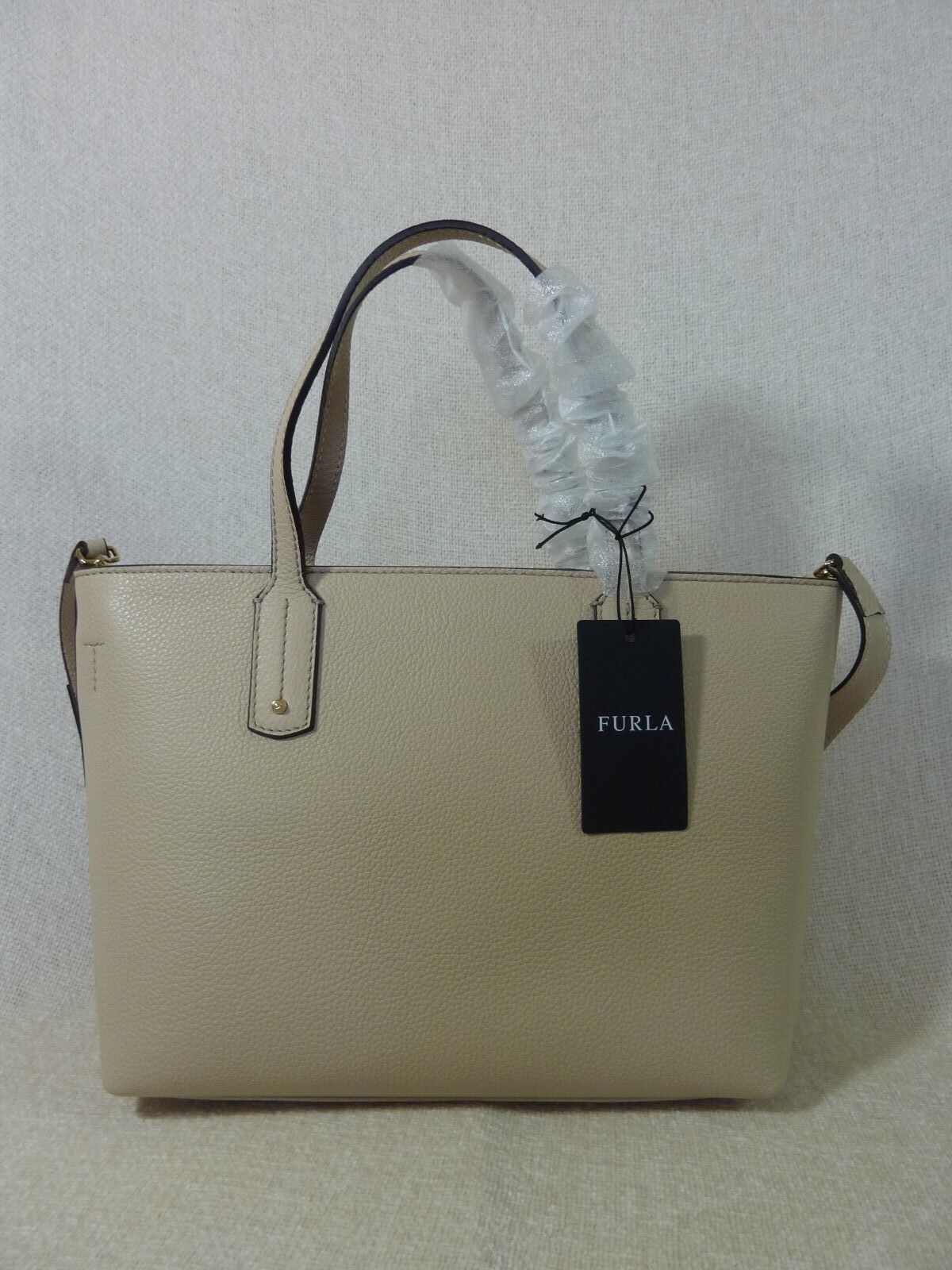 NWT FURLA Acero Beige Pebbled Leather Small Julia Tote Bag $368 - Made in Italy