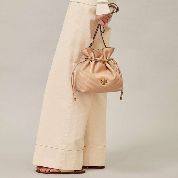 You Are Looking At A Very Adorable Devon Sand Leather Kira Chevron Bucket Bag By Tory Burch