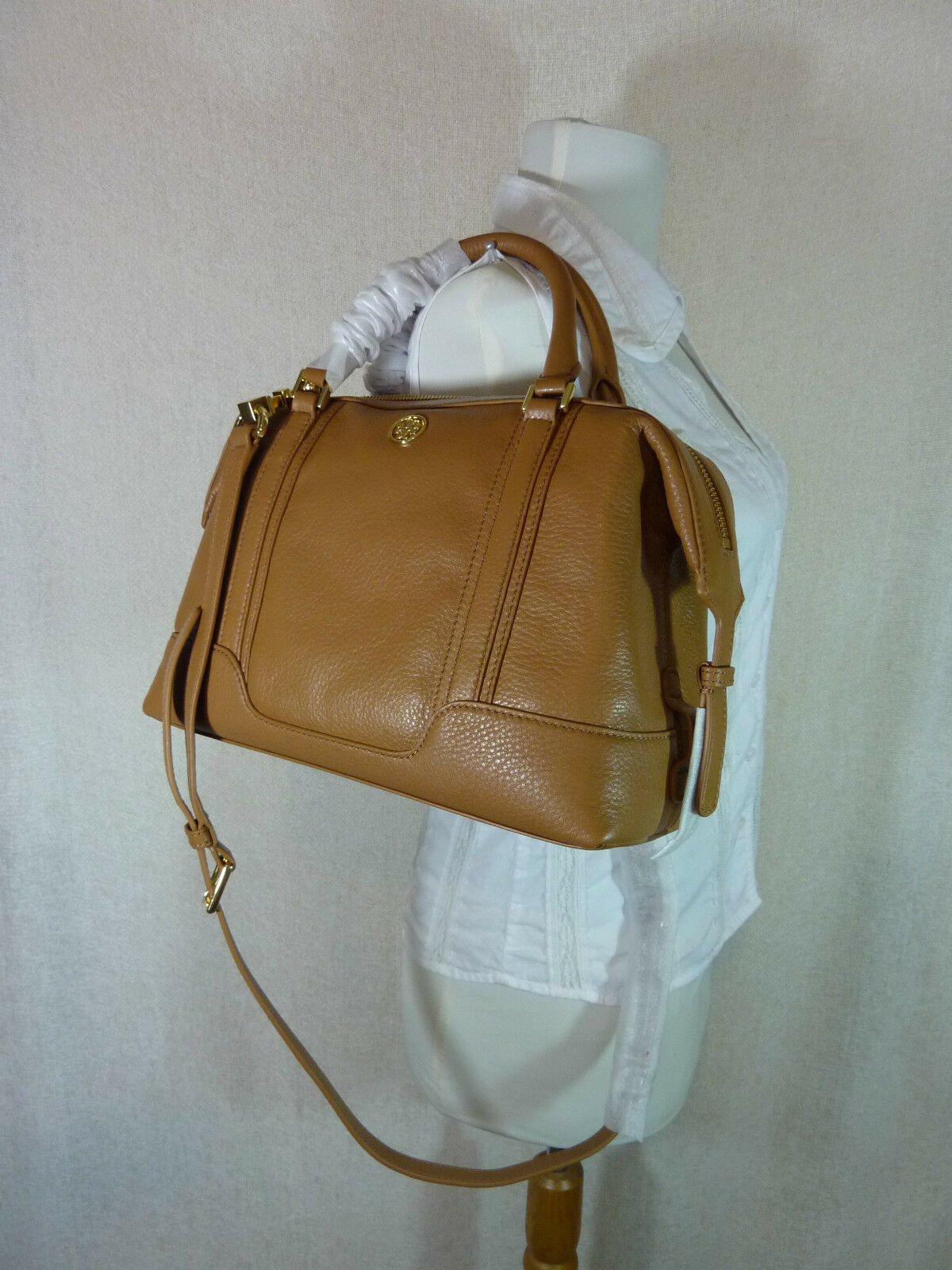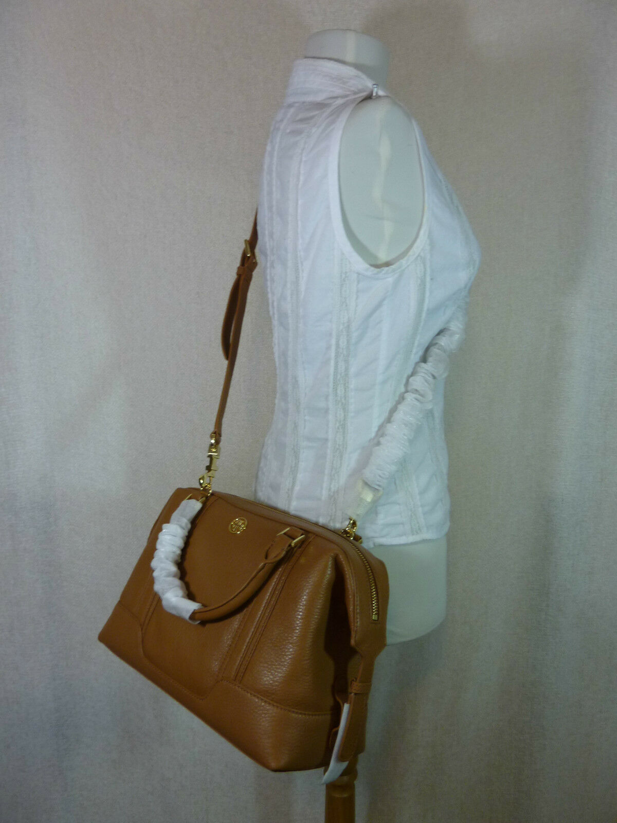 NEW Tory Burch Landon Bark Brown Pebbled Leather Mini Satchel/Shoulder Bag