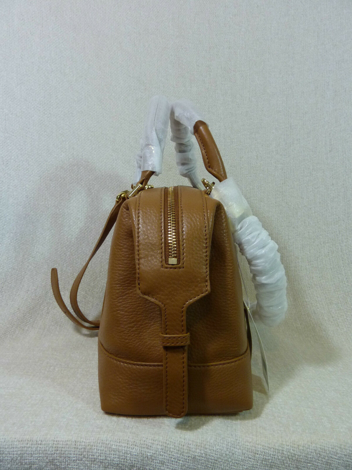 This bag is made of bark brown/tan color pebbled genuine leather.