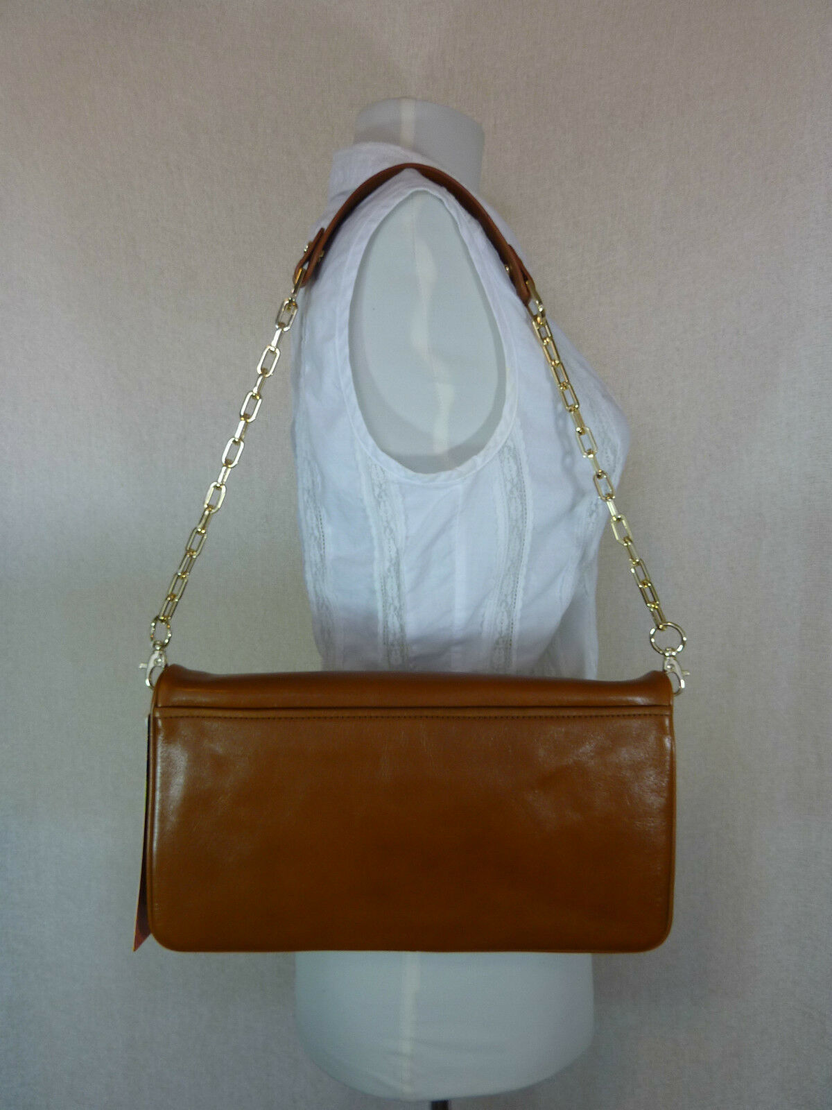 You Are Looking At A Very Beautiful Luggage Brown Leather Bombe Reva Convertible Shoulder Bag/Clutch By Tory Burch