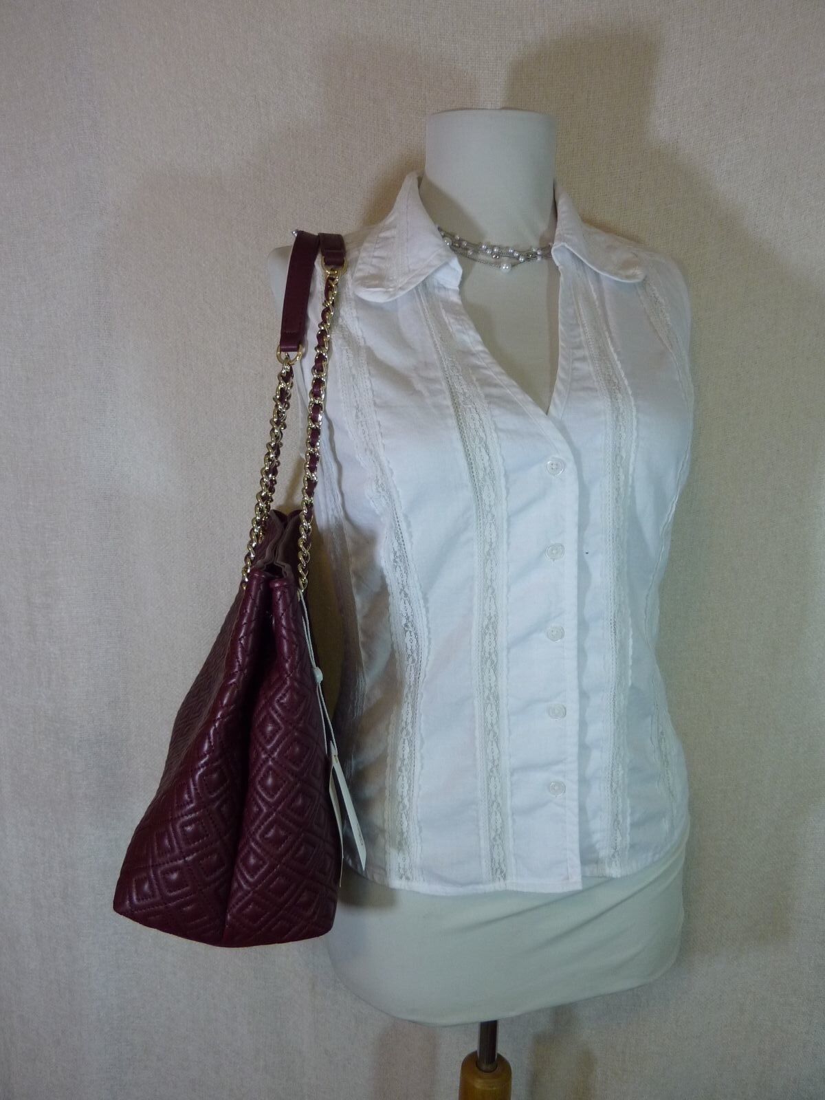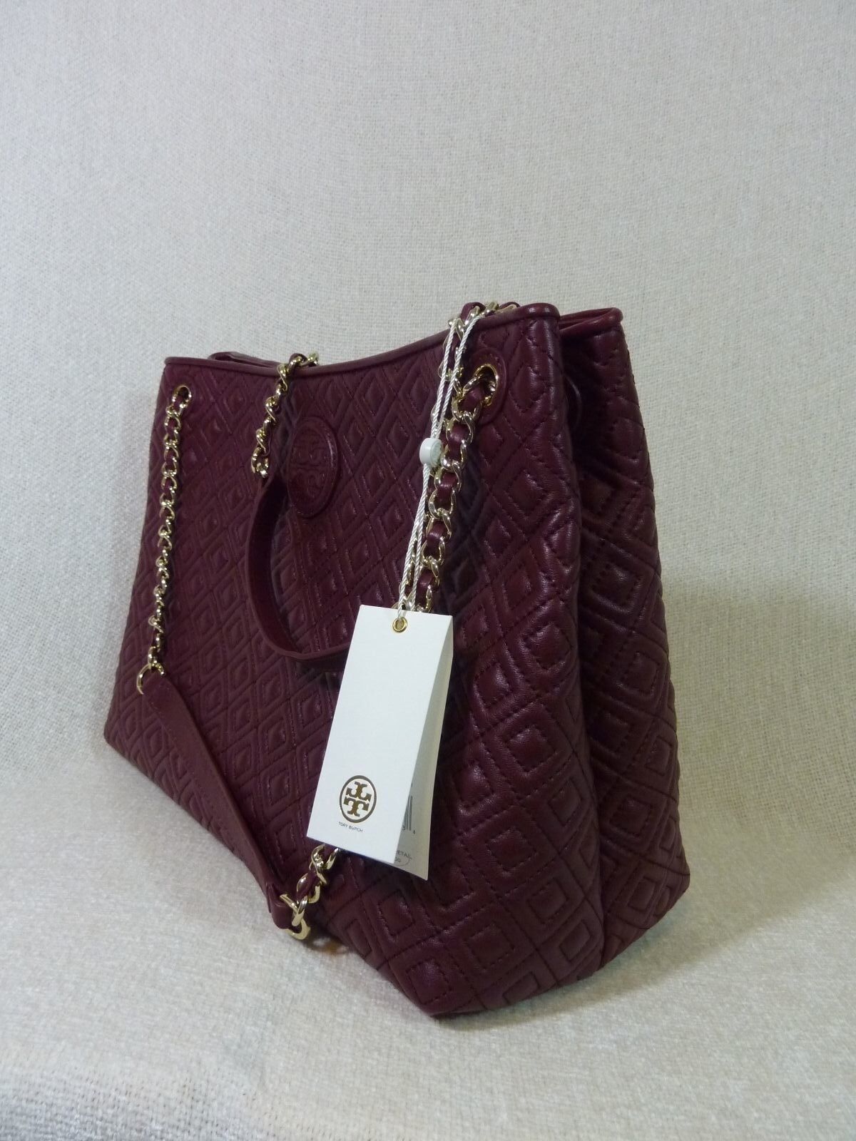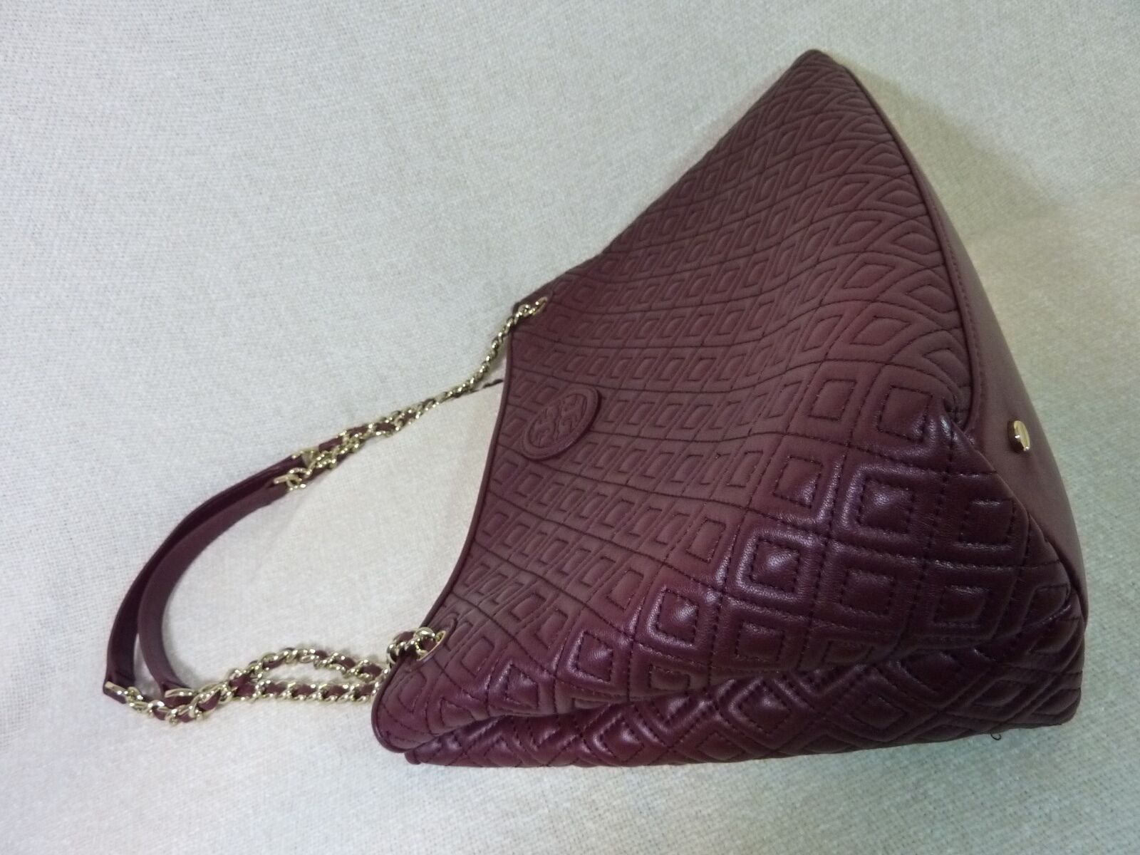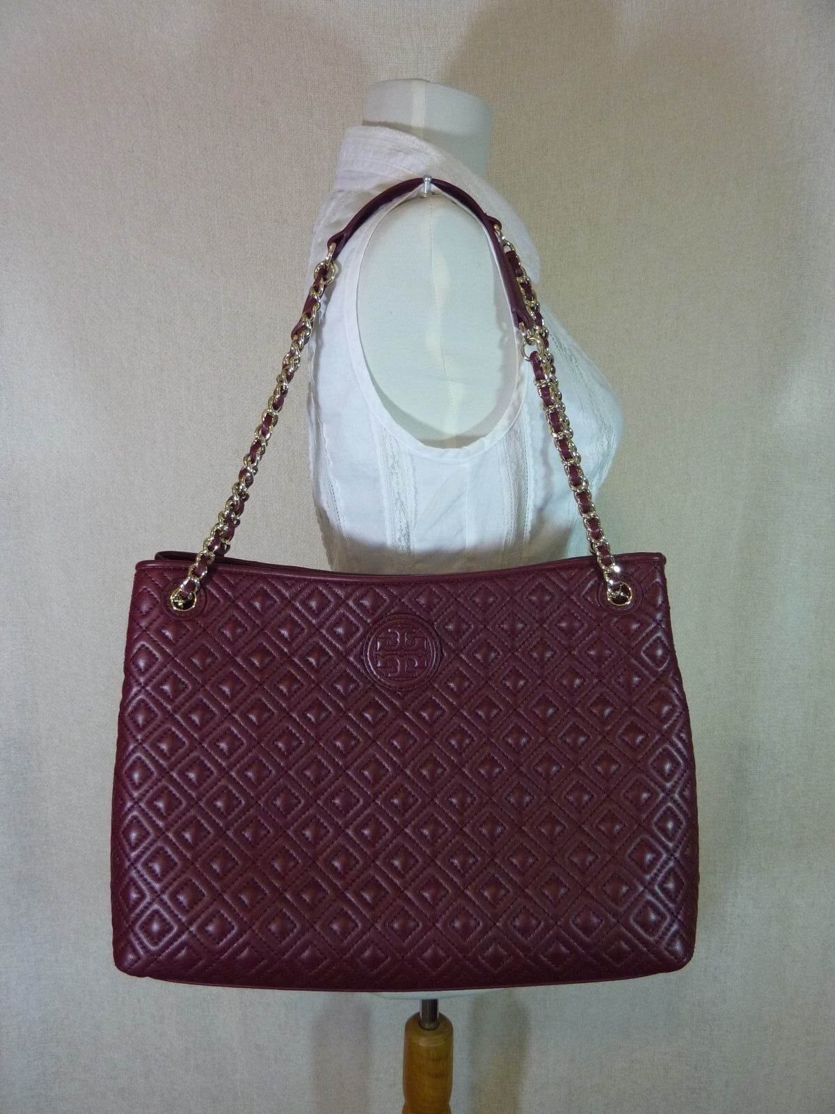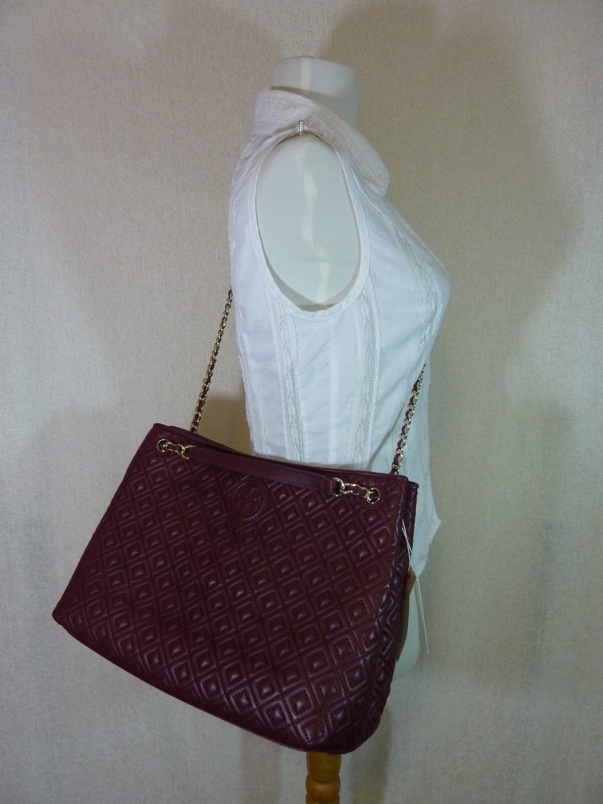 You Are Looking At A Very Gorgeous Deep Berry/Burgundy Quilted Leather Marion EW Slouchy Tote Bag By Tory Burch