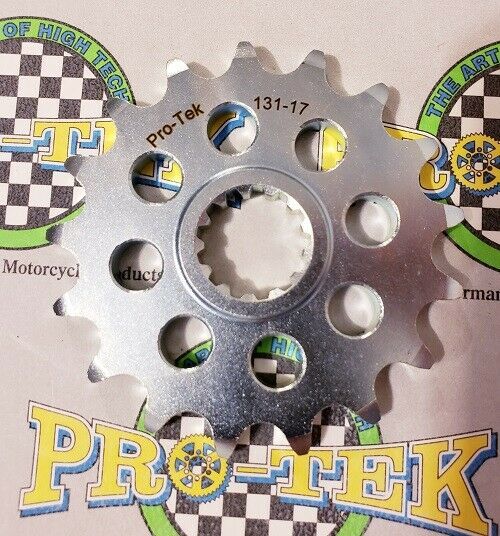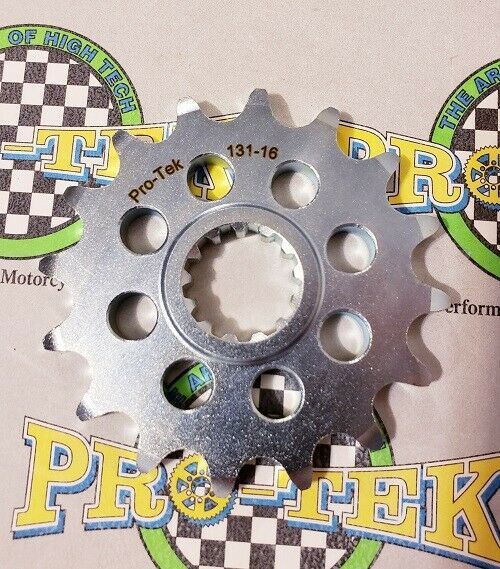 Pro-tek front sprockets are also completely CNC machined to exact tolerances from 4140 nickel-chromoly steel resulting in a quality product. None of the Pro-tek front sprockets are gear hobbed, but are lightened with drilled holes to save on rotating mass. Every lb of rotating mass equates to a 4 lb weight reduction. The sprockets are then case hardened to Rc 58-60 and finished with a zinc plating for added durability and protection from corrosion. Made in the USA, normally retail for $29.95. This is for a 525 Pitch front sprocket 14, 15, 16 or 17 tooth.