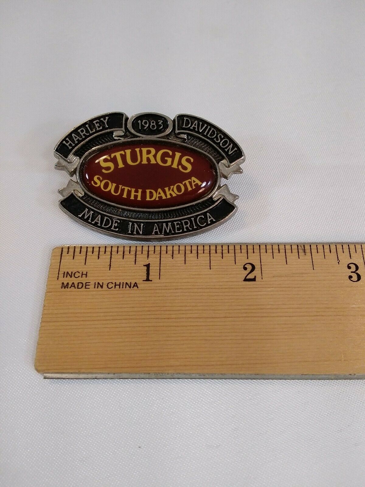 Harley Davidson Sturgis South Dakota Bike Week Pin 1983. Great for Collector's clips are on the back. Thank You for looking at my listing.