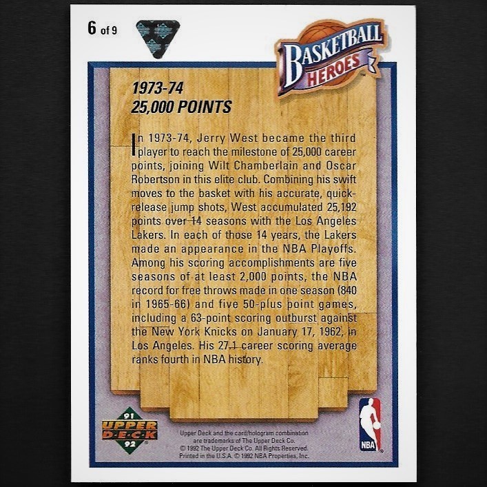 Jerry West autograph signed 1992 Upper Deck card #6 Lakers