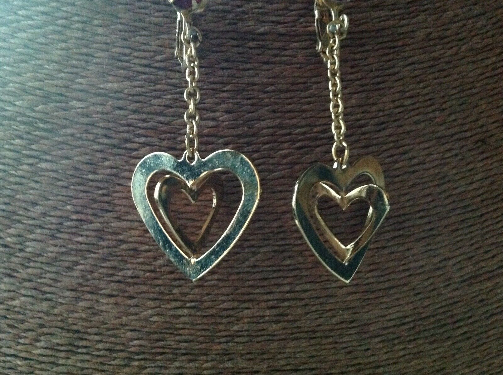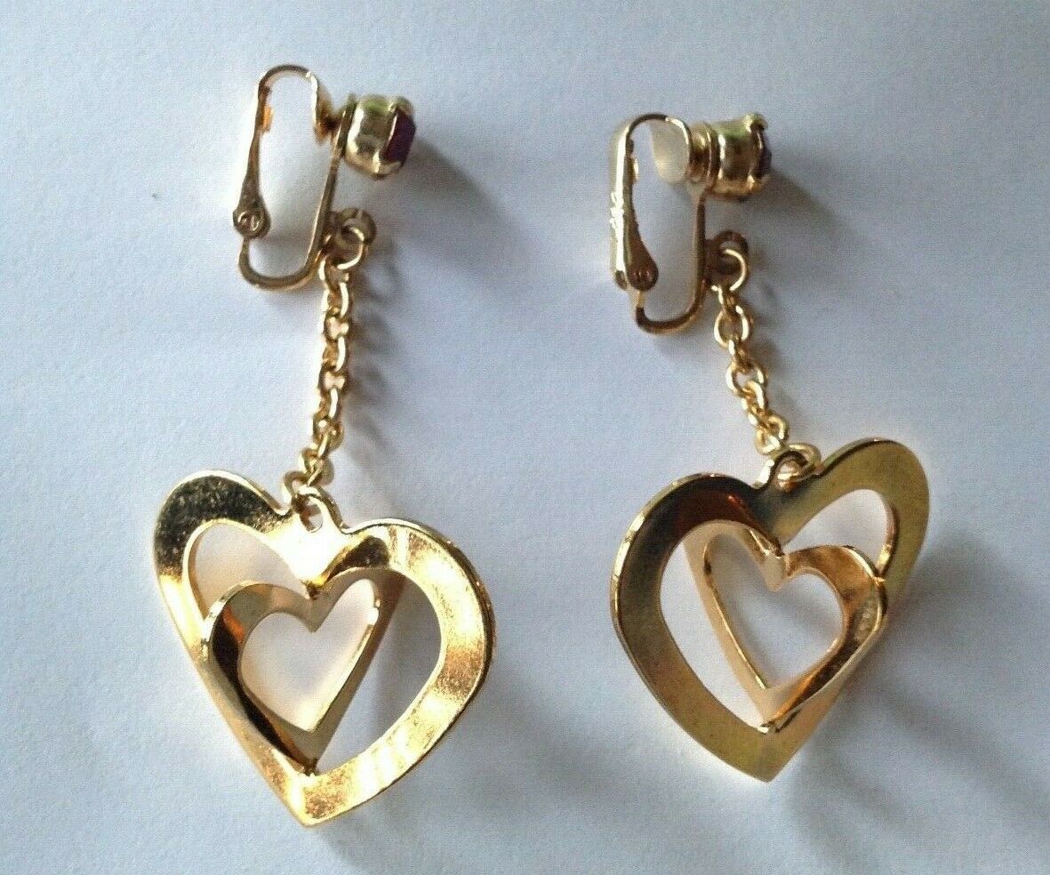 Vintage AVON Gold Tone Rhinestones Heart Dangle Drop Clip On Earrings, new without tags and will be shipped within 24 hours of full payment