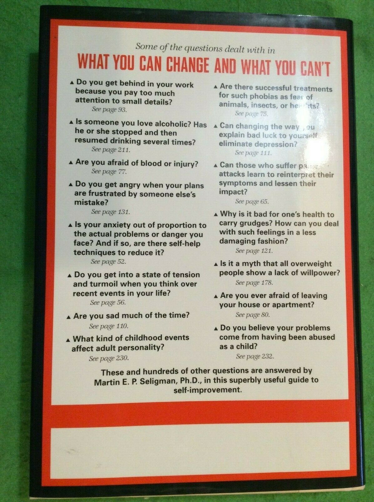 WHAT YOU CAN CHANGE & WHAT YOU CAN'T by MARTIN SELIGMAN - HARDCOVER - 1ST ED