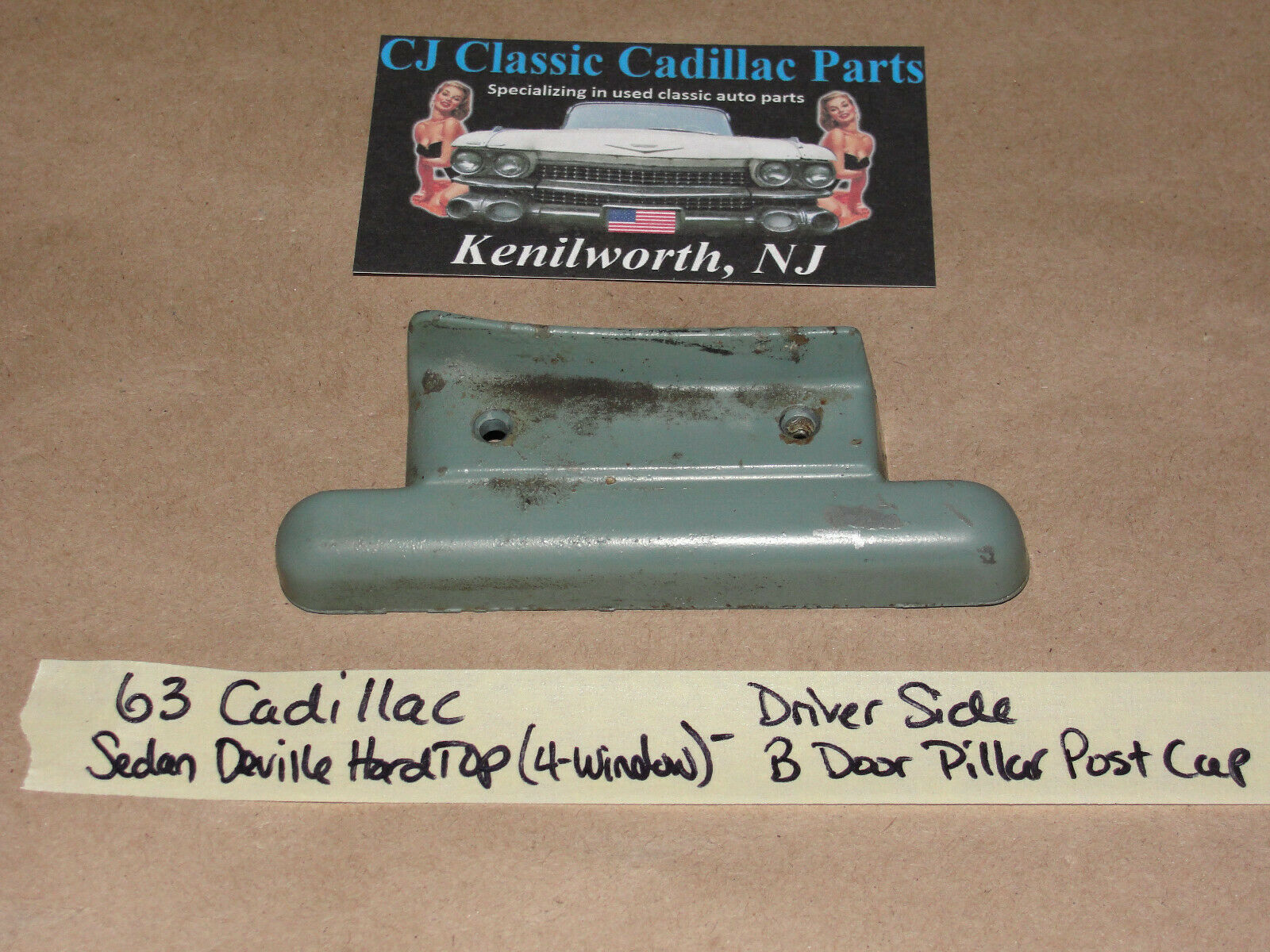 This OEM driver side center door post cap cover is in good condition. This mounts on top of the center door post that separates the front and rear door on the hardtop models. This is fully intact, no cracks. This was removed from a 1963 Cadillac Deville 4 Window Hardtop (look at all pics compare to yours before purchasing as we do not take returns), fitment based on Cadillac Master Parts List 35.1400 but may fit vehicles listed in compatibility chart; please do your own research as we do not offer refunds if it does not fit your vehicle. There are plenty of pictures we purchased the zoom, so please use it. What you see in the pictures is what you get.