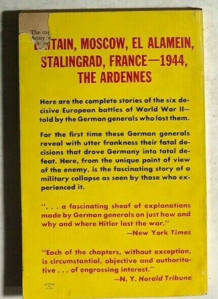 THE FATAL DECISIONS El Alamein Stalingrad Ardennes (1958) Berkley paperback 1st