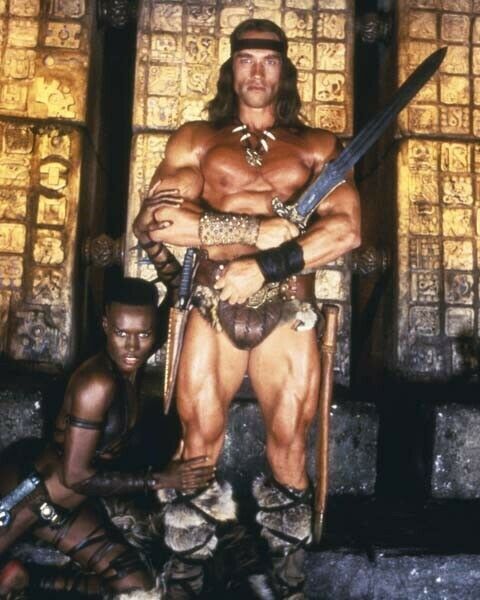 Conan The Destroyer Grace Jones lies at feet of Arnold Schwarzenegger 8x10 photo