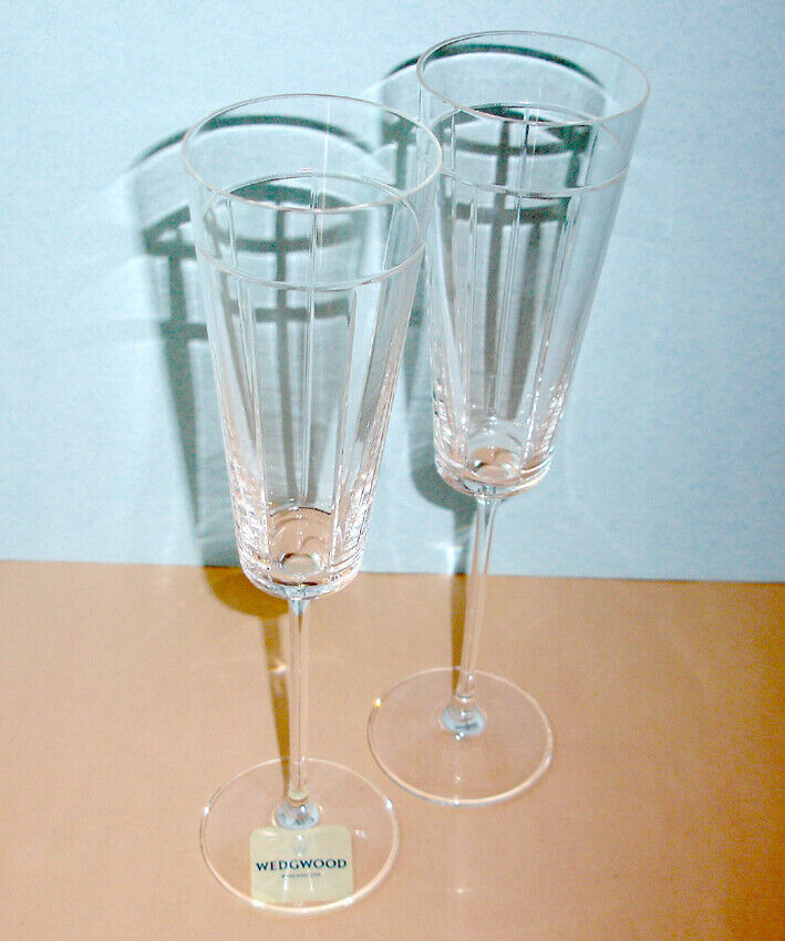 Wedgwood Sloane Square Champagne Flute Set of 2 Crystal Germany 10.25"H New