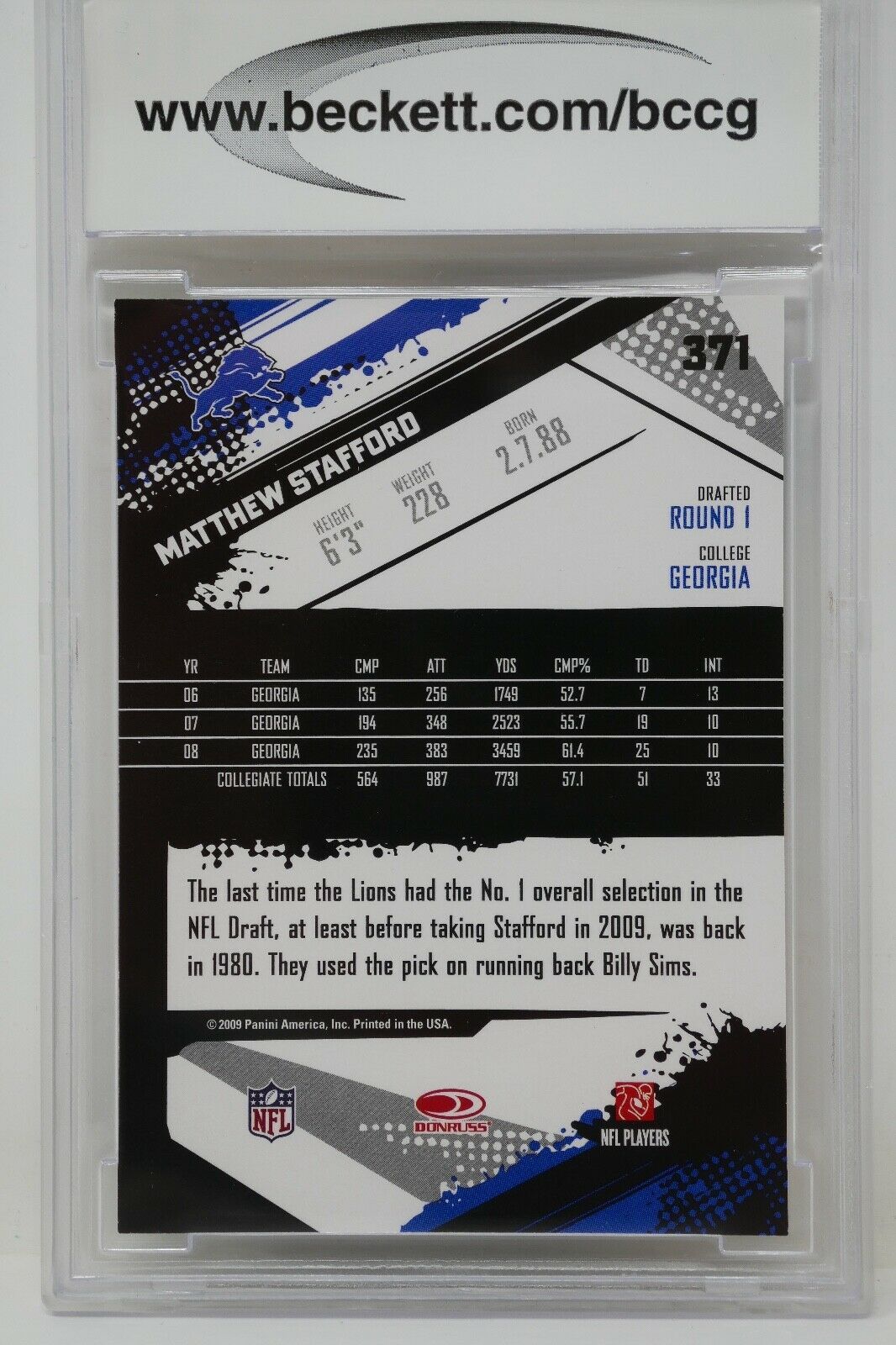 Up for sale is a 2009 Score #371 Matthew Stafford Rookie Trading Card. This has been graded by Beckett.