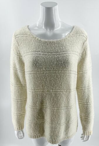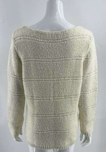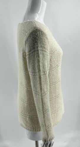 Chicos Sweater Size Large / 2 Cream Ivory Sequin Open Knit Pullover Womens.
