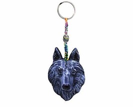 Wolf Head Wildlife Animal 3D Figurine Keychain Multicolored Macramé Metal Ring -