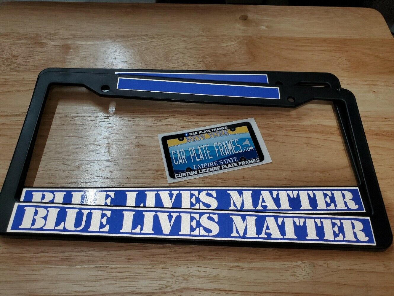 LOT OF 2 REFLECTIVE BLUE LIVES MATTER police sherrif License Plate Frames