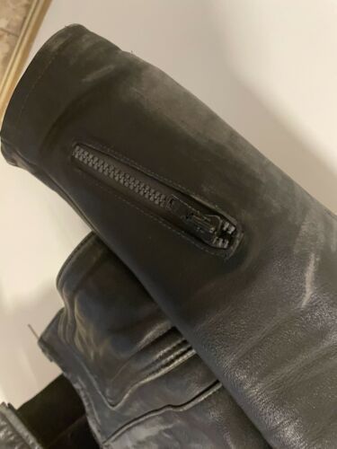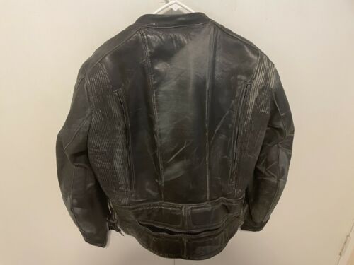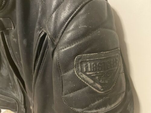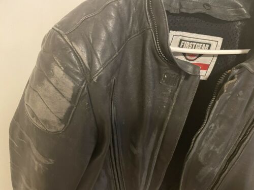First Gear Hein Gericke Black Leather Cafe Racer Motorcycle Jacket Sz 40 used condition please see pictures sold as is