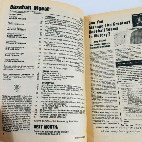 VTG Baseball Digest Magazine August 1979 and 50 similar items