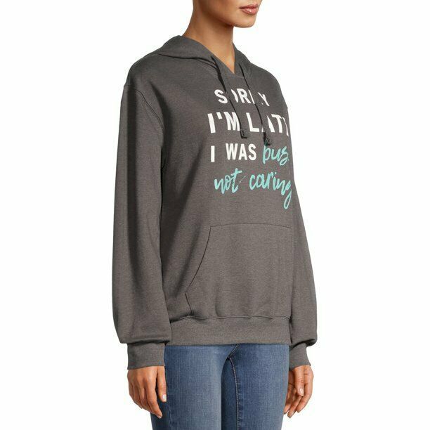 Sorry I'm late. I as busy not caring. Let everyone know your thoughts with this fashionable long sleeve pullover hoodie.