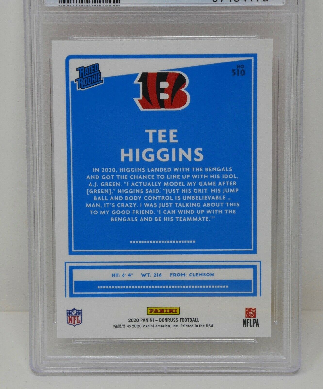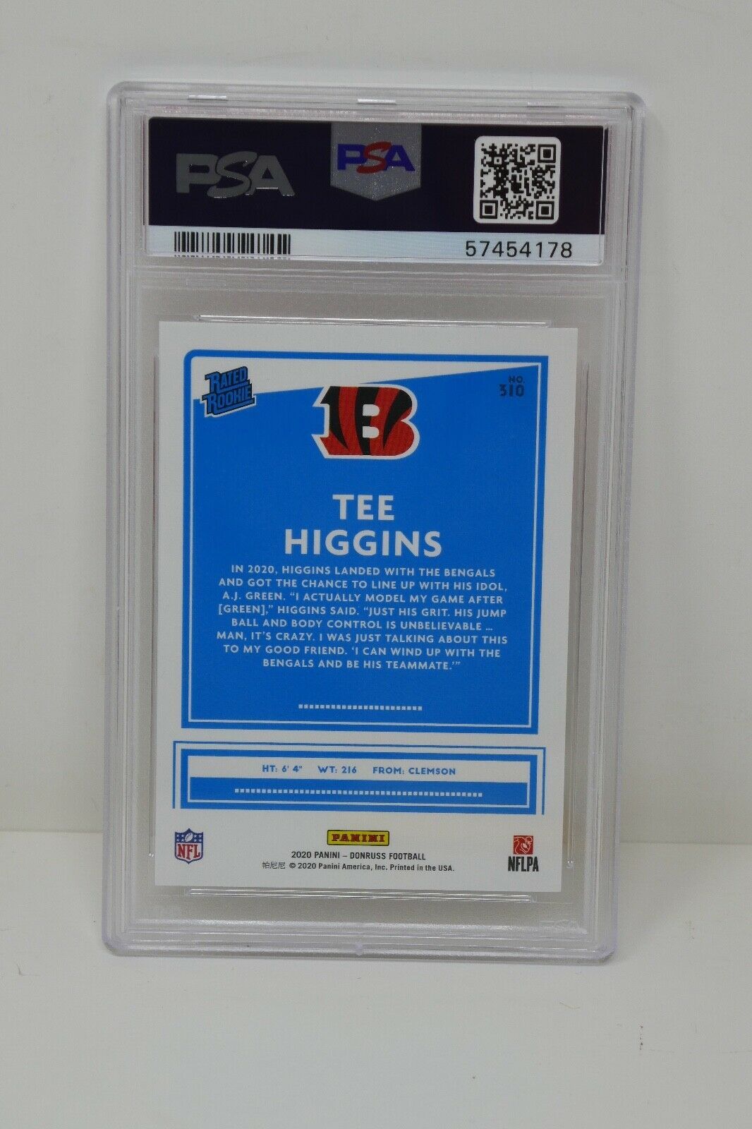 Up for sale is a 2020 Panini Donruss #310 Tee Higgins Canvas Rated Rookie Trading Card. This has been graded by PSA.