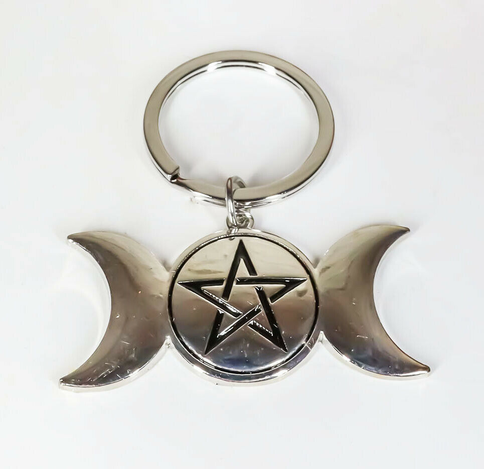 Ebros Metal Wicca Triple Moon Pentagram Coffin Planchette 24 Keychains And Display Set