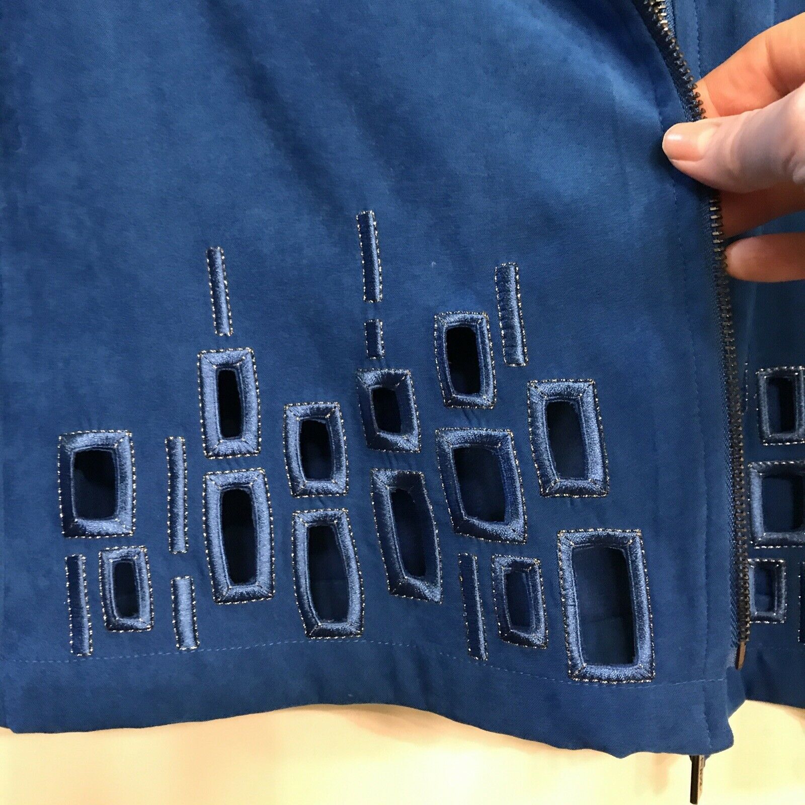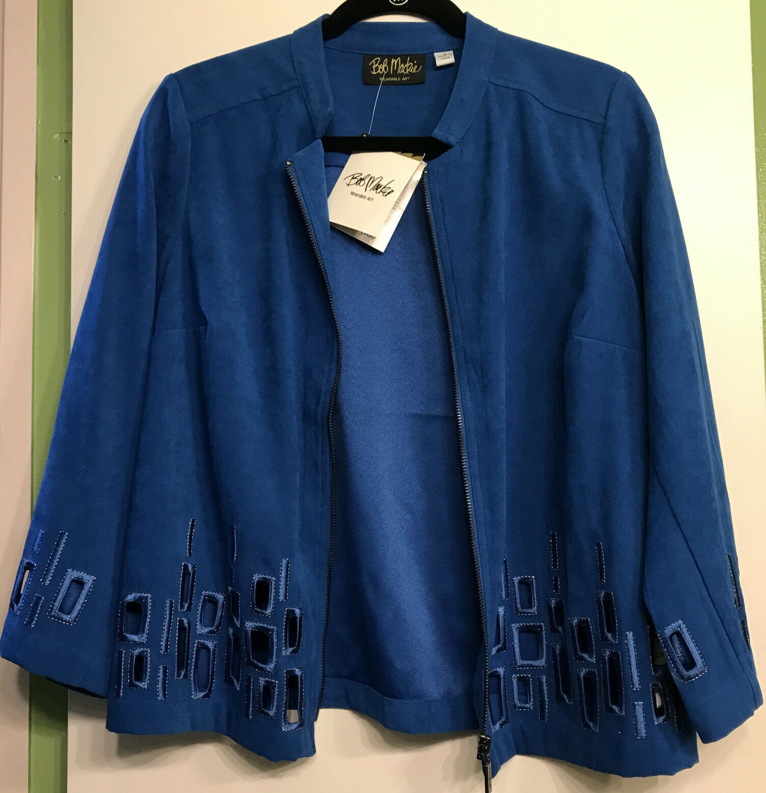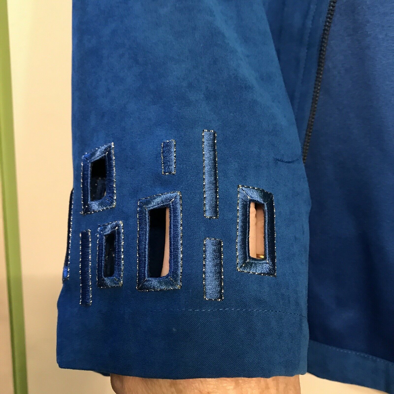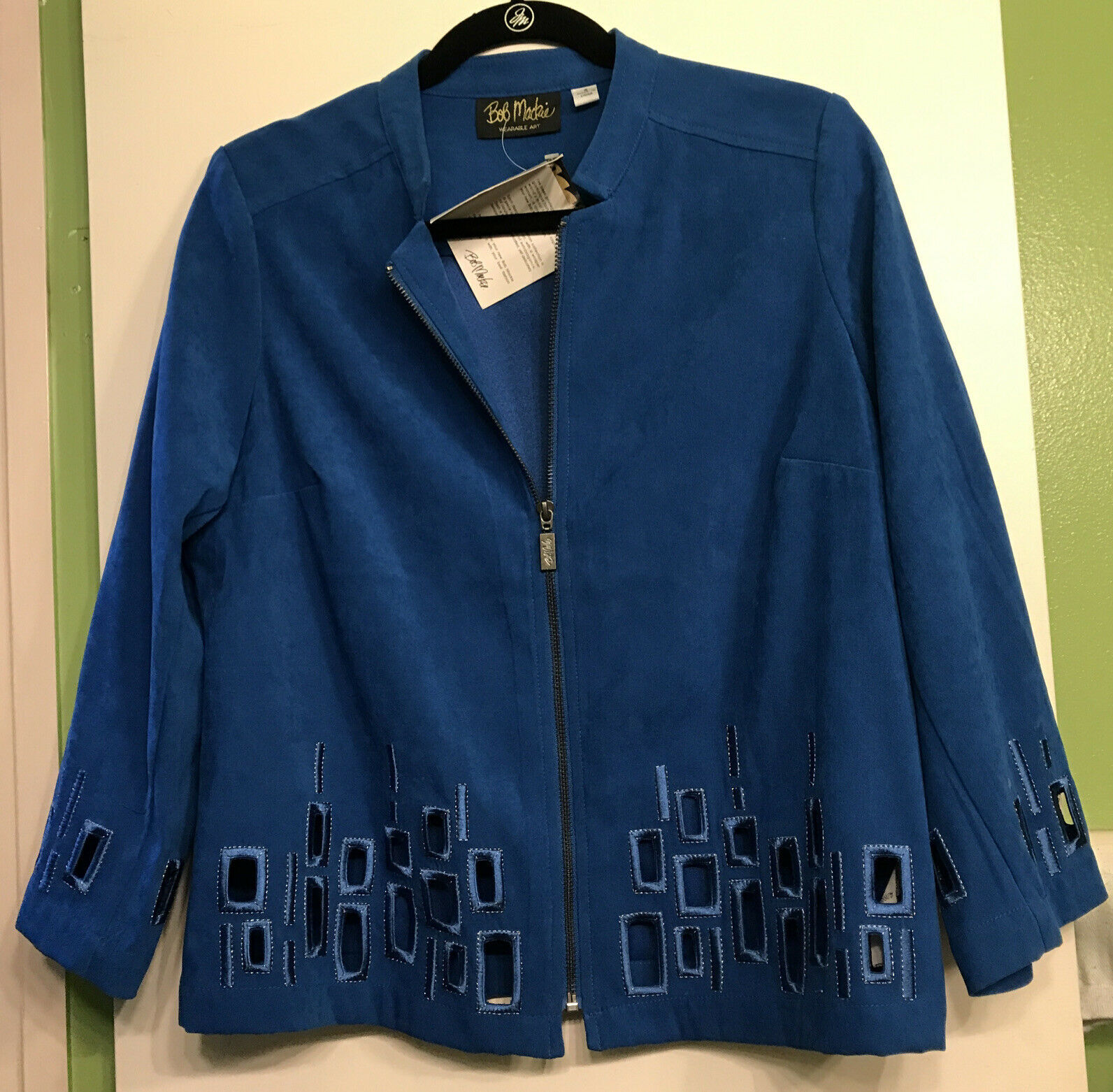 NWT Bob Mackie Wearable Art Wm. S Blue Faux Suede Jacket Cut Out Sleeves/Bottom