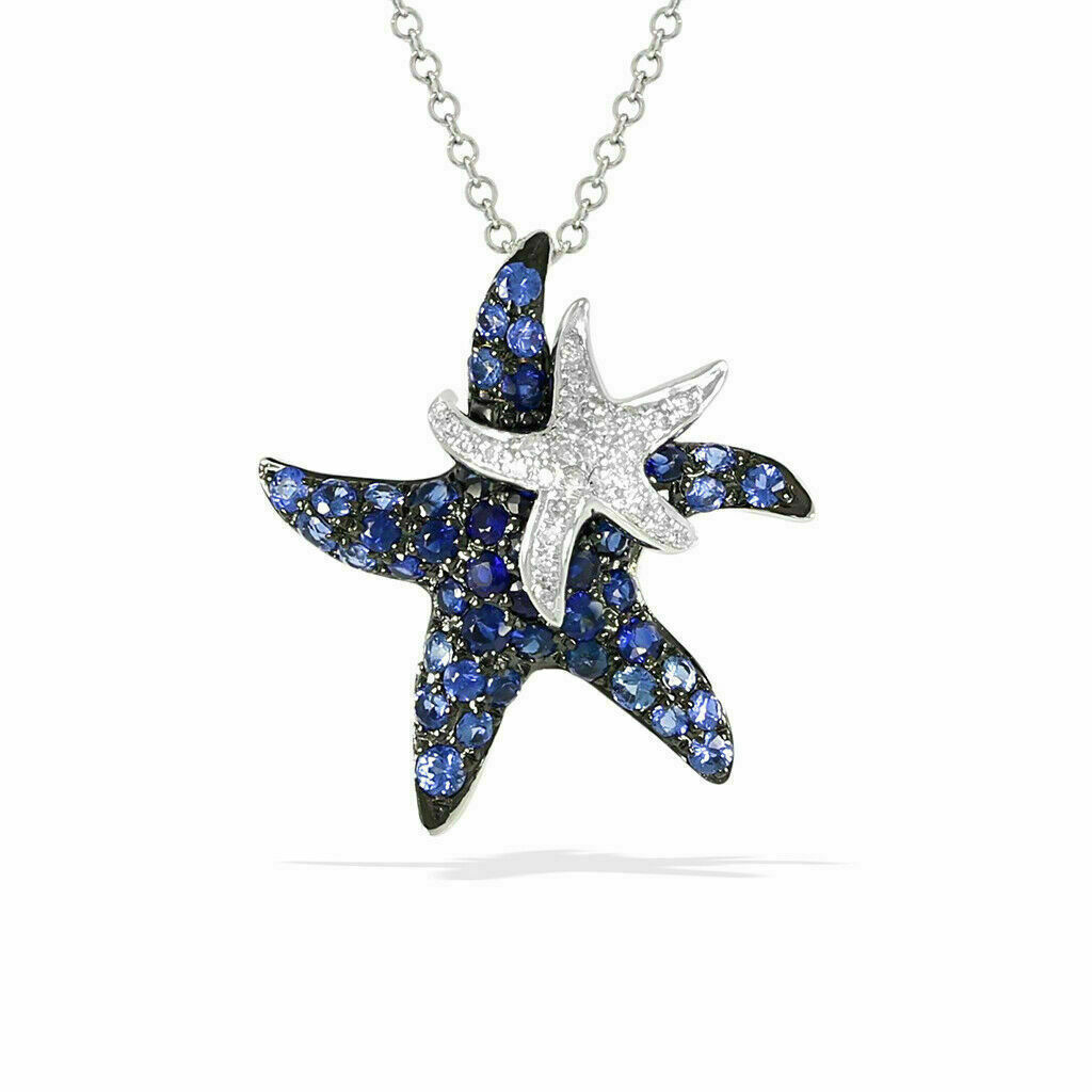 2Ct Blue Sapphire & Diamond Dainty Starfish Pendant Necklace In 925 Silver
