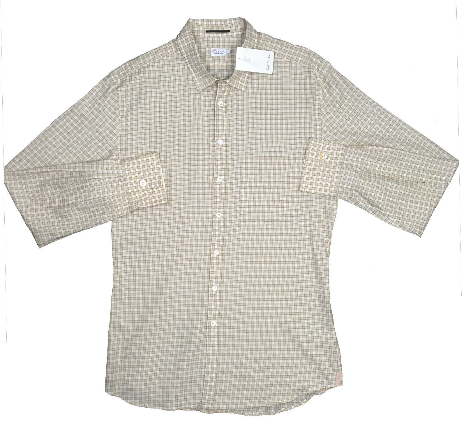 NEW $525 Paul Smith Mainline Shirt! Tan & White Check Design SLIM FIT ITALY