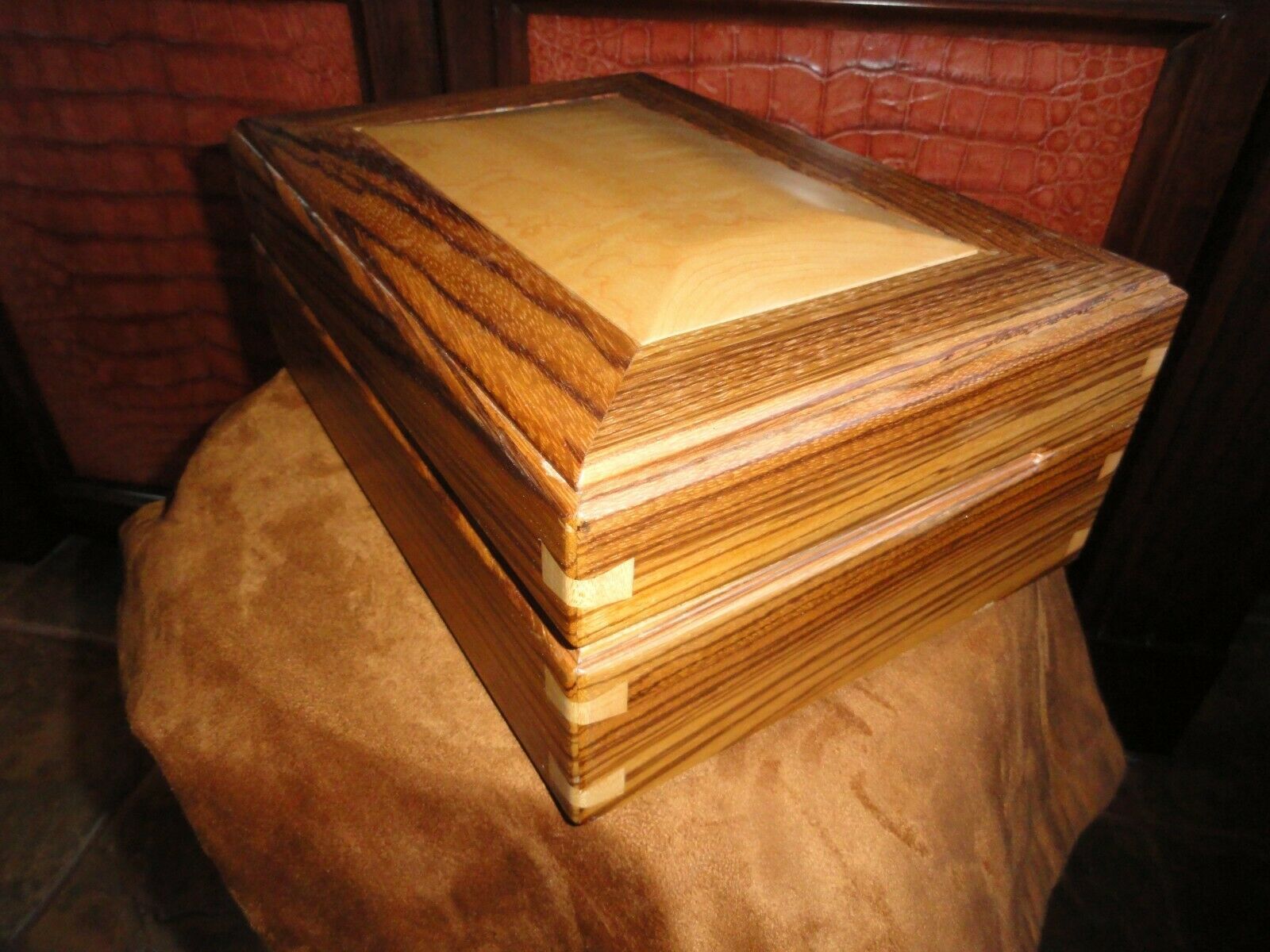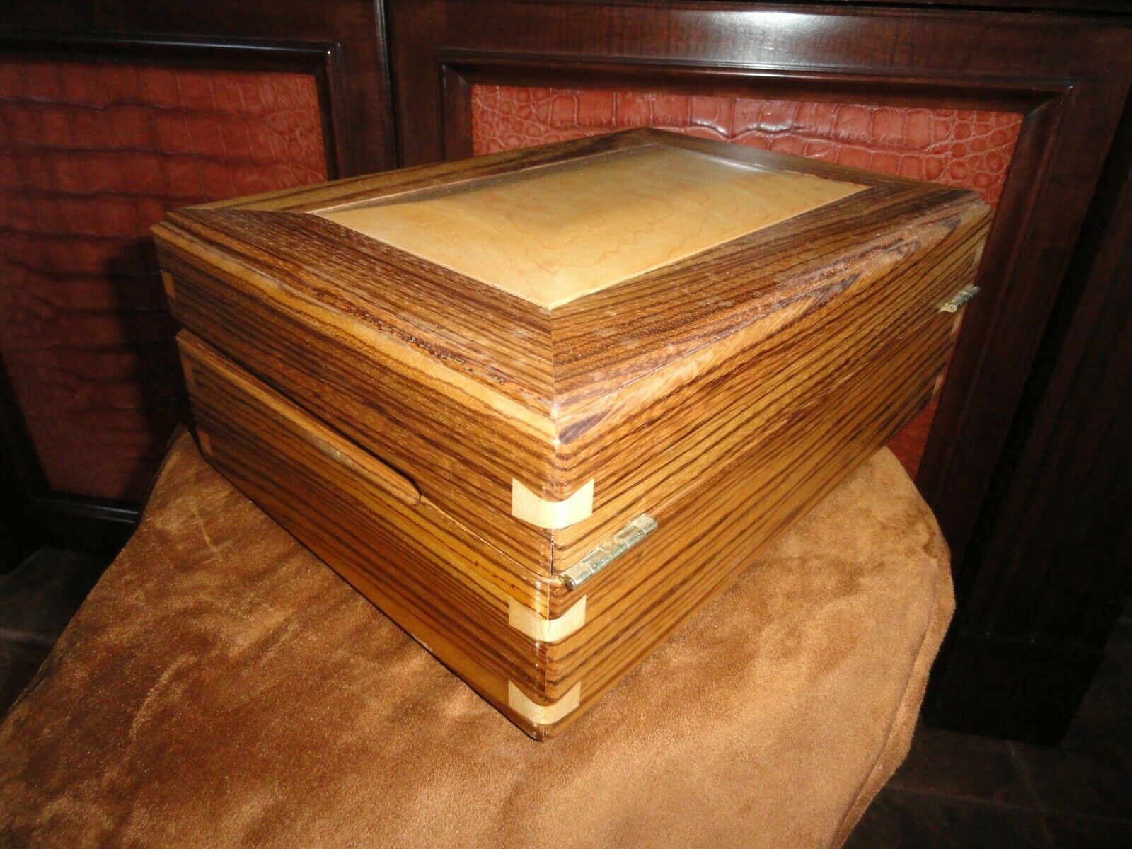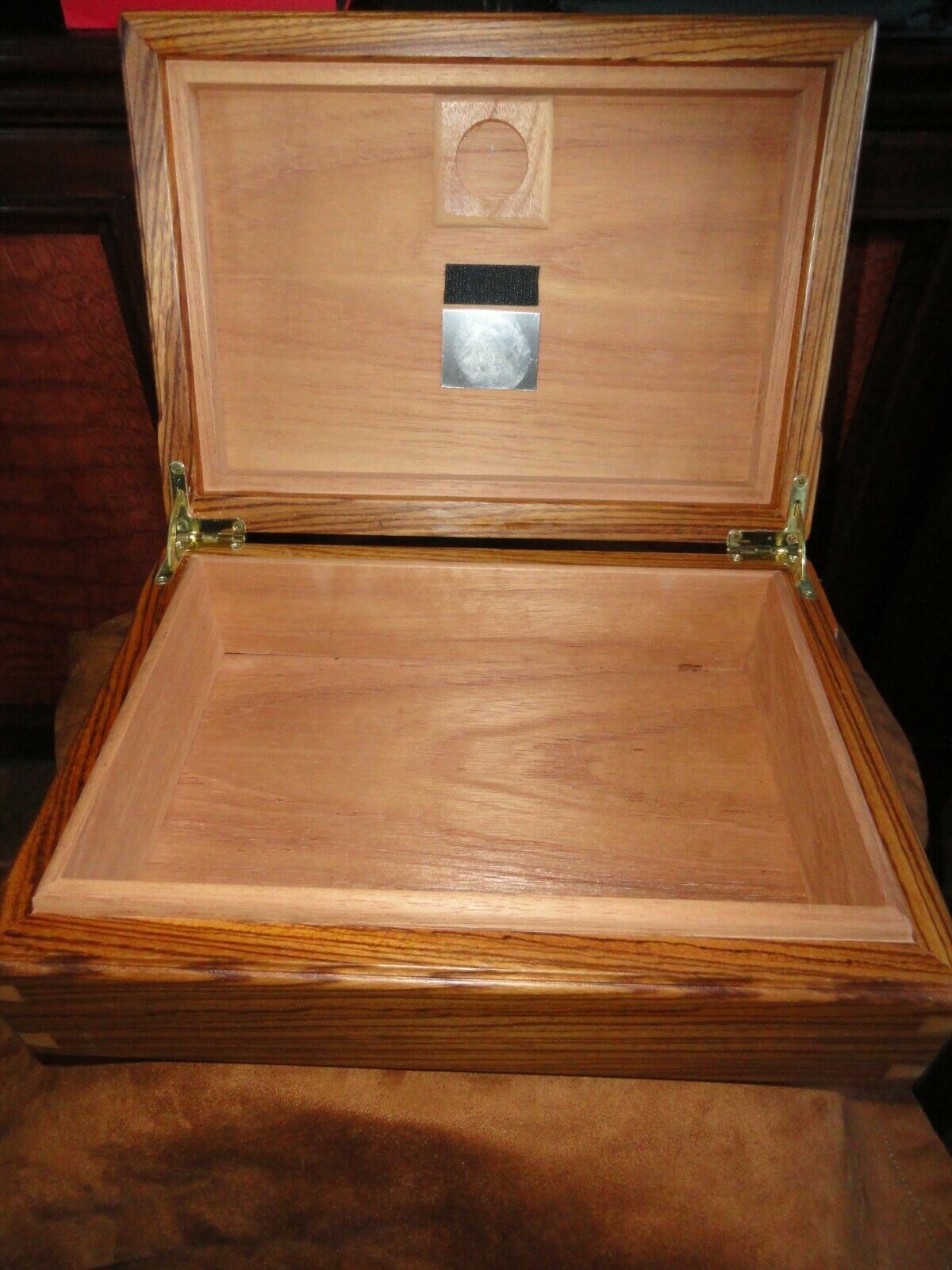 This is a new custom handmade humidor . Made in USA. Measures 13.5" L x 9.5" W x 5" H. Comes without the hygrometer and humidifier. We ship Worldwide fully insured.