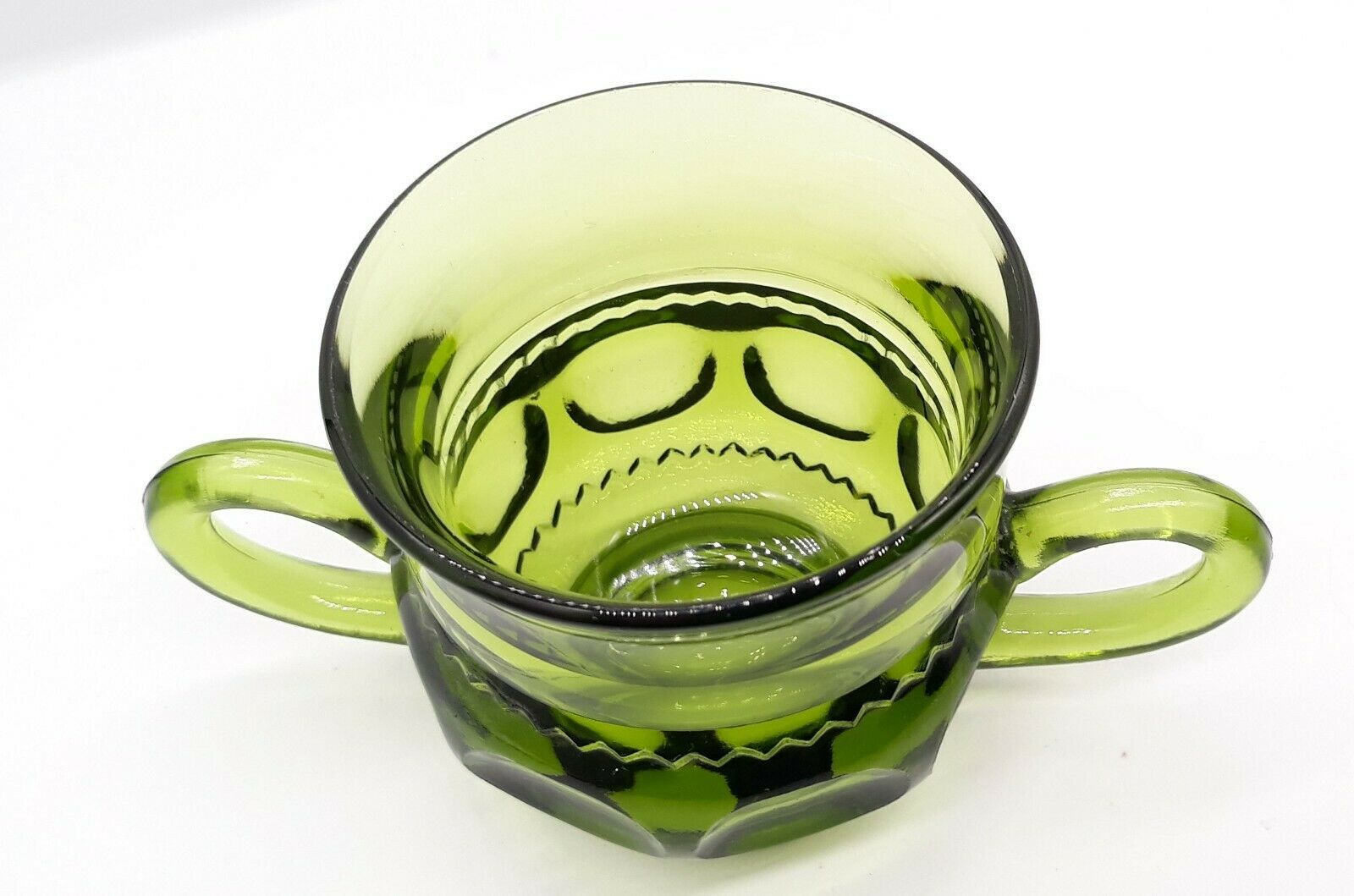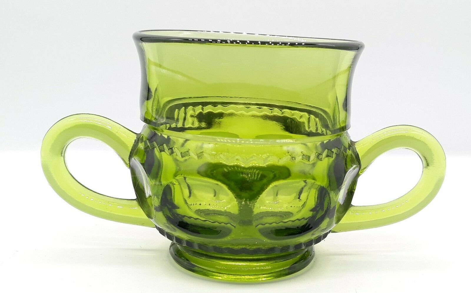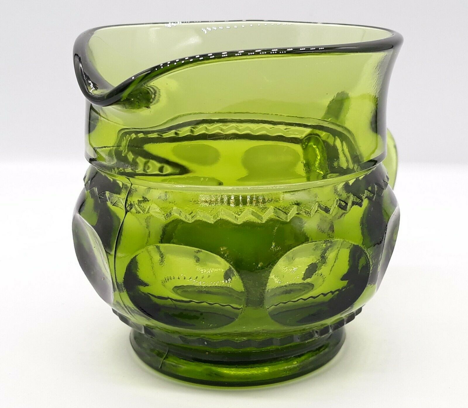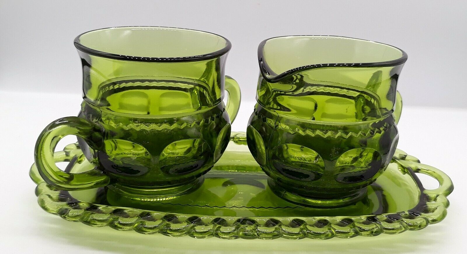Indiana Kings Crown Thumbprint Avocado Green Creamer, Sugar Butter Underplate