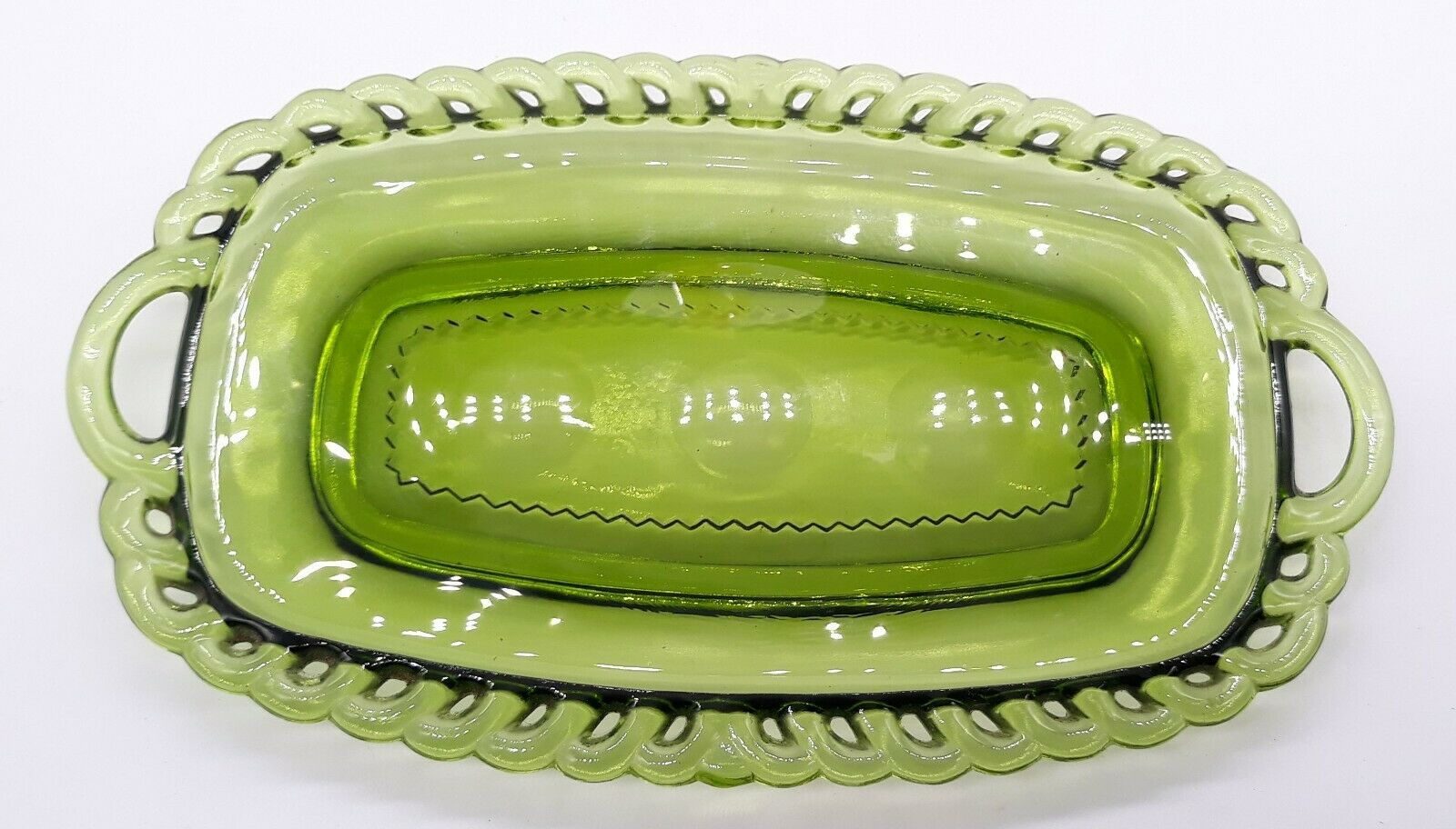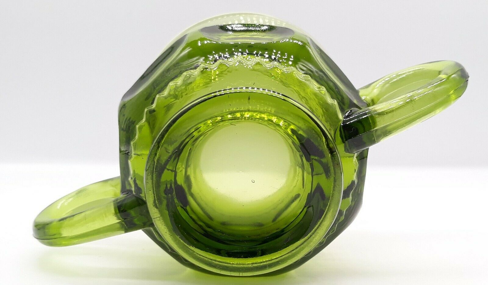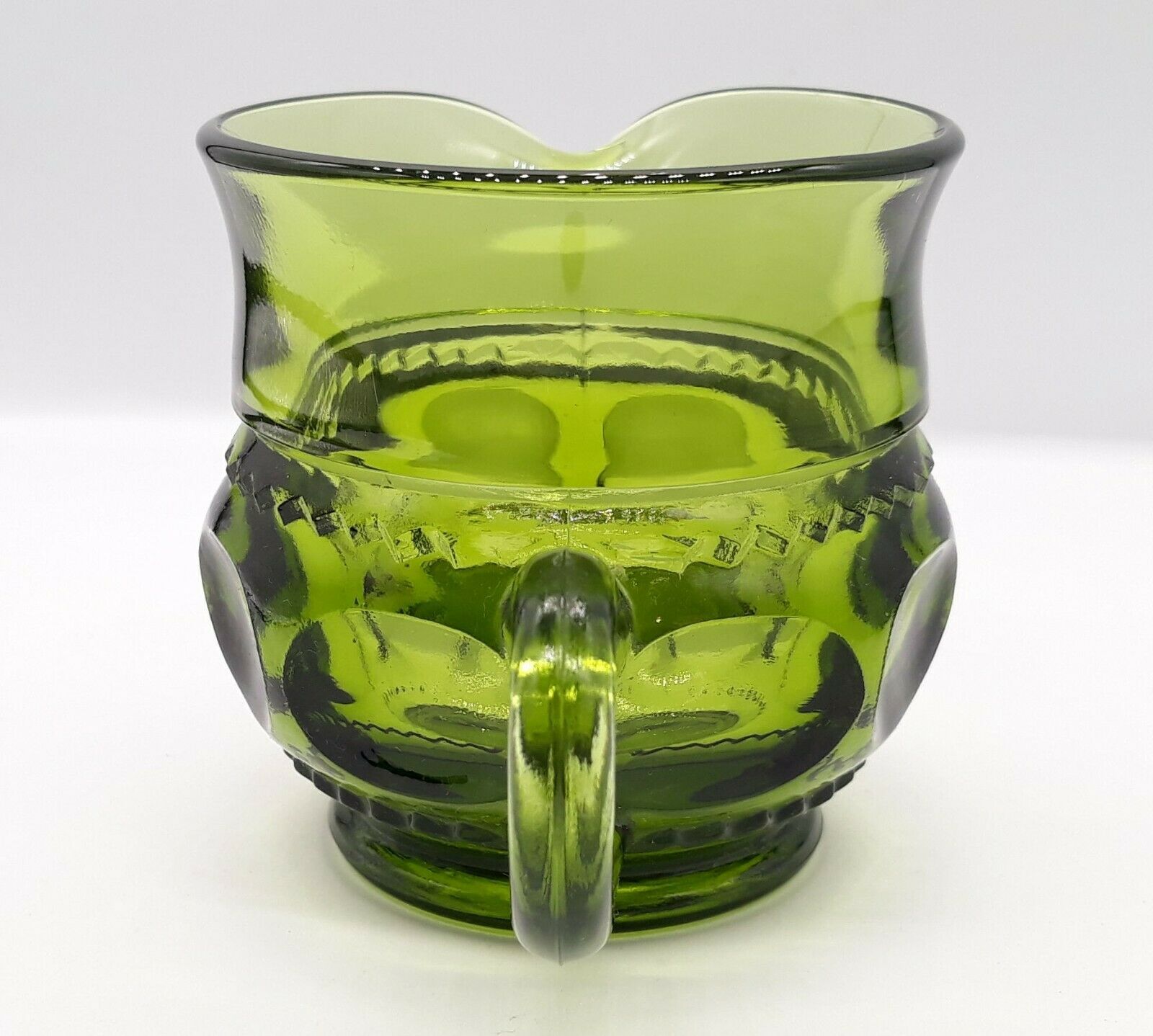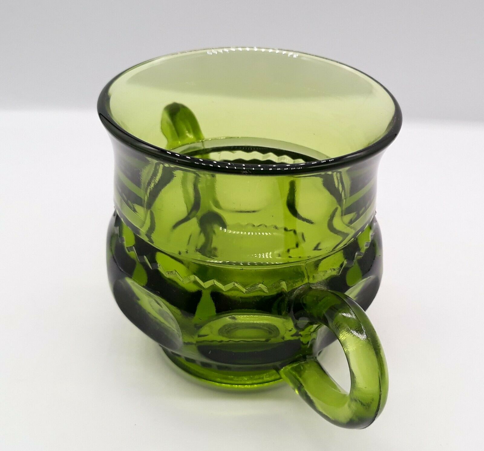 Indiana Kings Crown Thumbprint Avocado Green Creamer, Sugar Butter Underplate