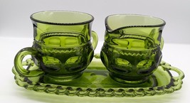 Indiana Kings Crown Thumbprint Avocado Green Creamer, Sugar & Butter Underplate