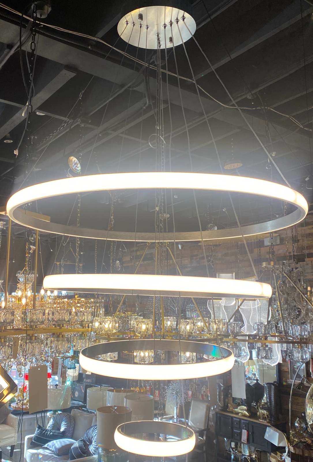 LED chandeliers, modern design. Perfect for hanging anywhere in your home.Light source included.(bulbs embedded).LED bulbs are a lot brighter than other light bulbs under the same power, so save energy. Their LED pendant lights are not only lights fixtures, but also a perfect addition for your modern decoration Personalized creative ring design lighting fixture light up your life particularly glamorous . The applicability of this fixture is abundant, you can install it in a bedroom, living room, dining room, kitchen, office, meeting room, showroom. Adjustable to different Length through a push- pin locking mechanism at the canopy ...Installer tip: Don't cut wires attached to the fixture under any circumstance. Excess cable should neatly lopped and tucked into canopy.