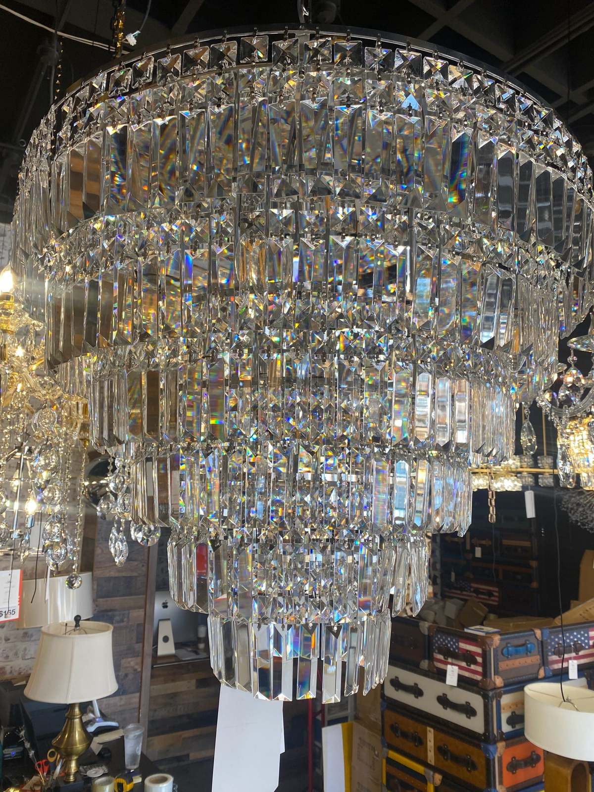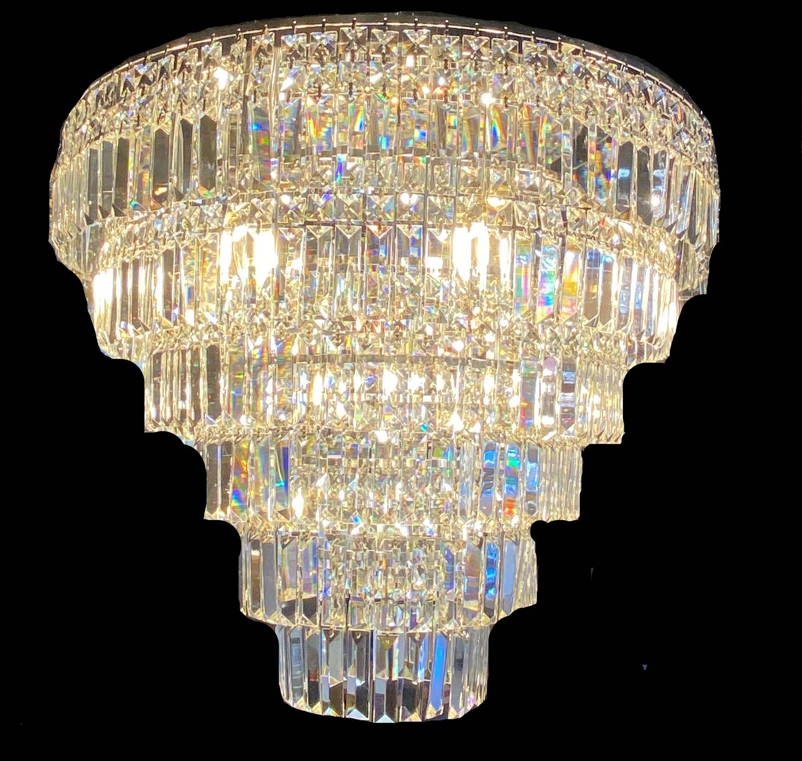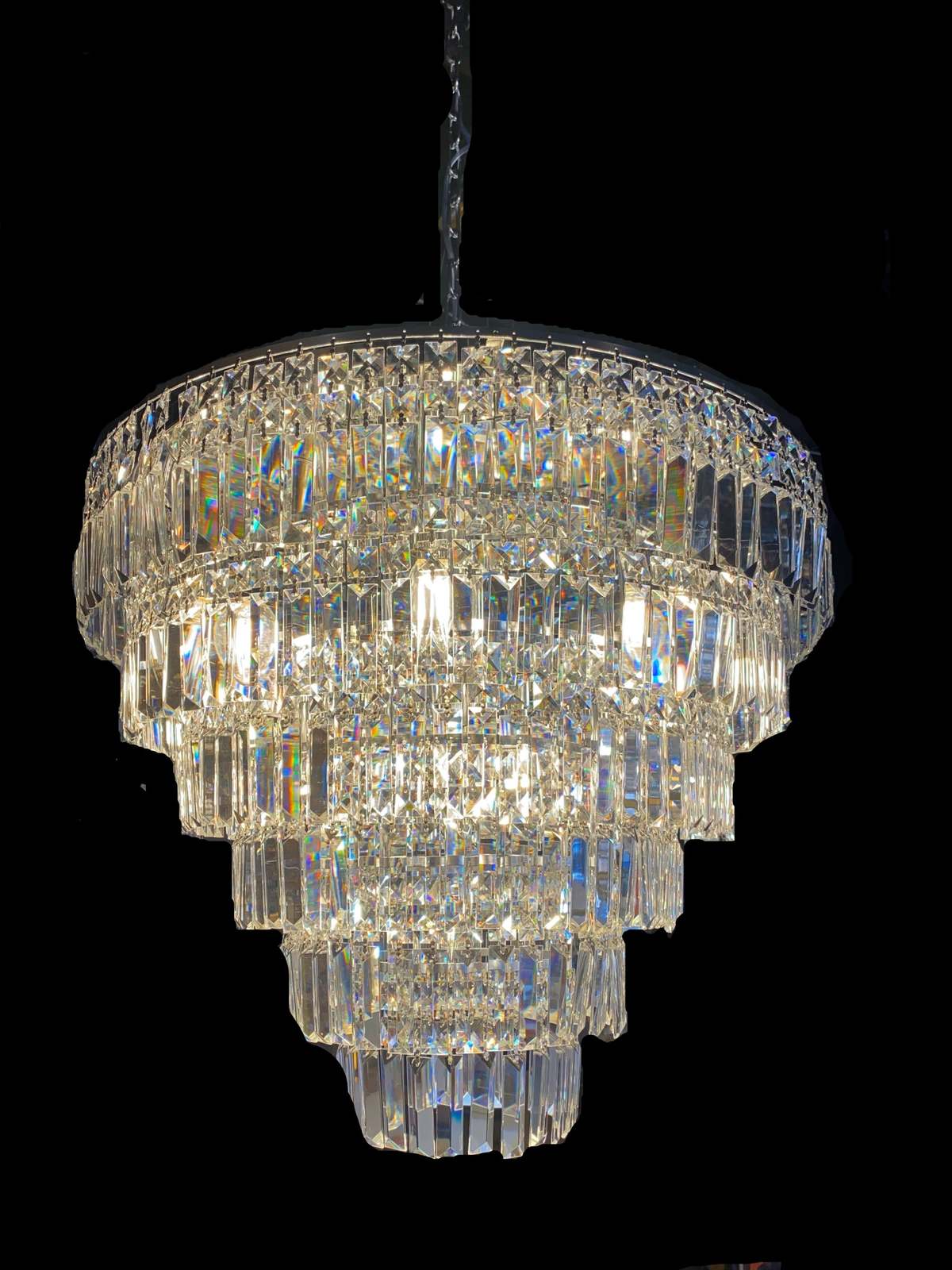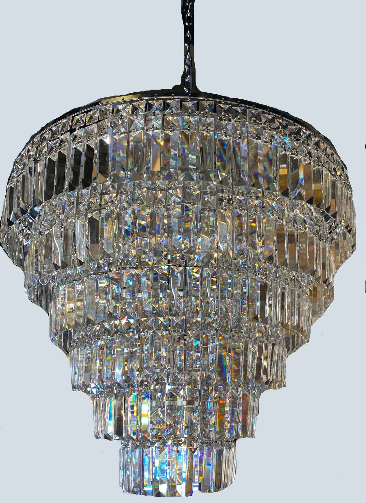 This fantastic Empire chandelier with An eye-catching centerpiece hanging all on its own, you might forget this chandelier is here to shine! Crafted from stainless steel, Large round frame with Chrome finish, complemented by 6 tiers of original real crystals for a glint of glamour.