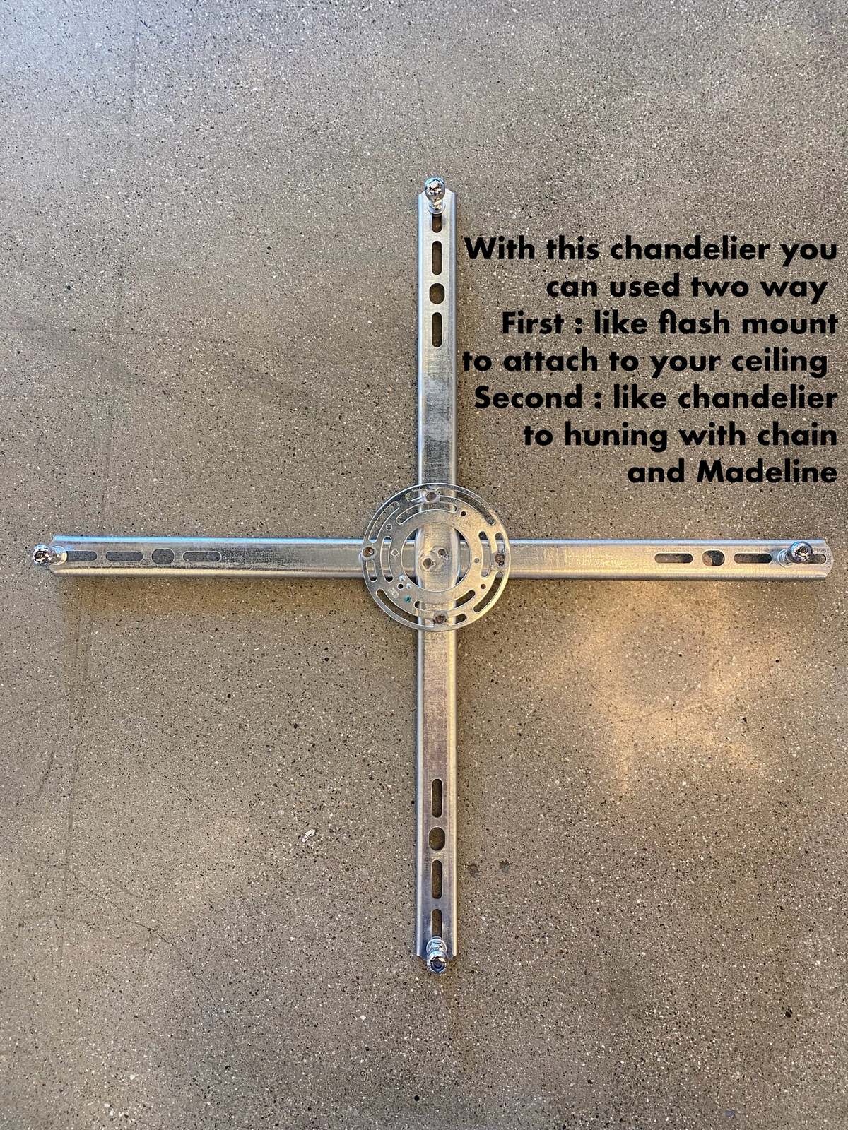 -Two way to insulation :The chandelier will reach you with two options First: hanging the chandelier from chain and medallion , second: mount it directly on the ceiling use the pieces for direct installation from the ceiling without use the chain and medallion all these accessories are including with the chandelier in the box