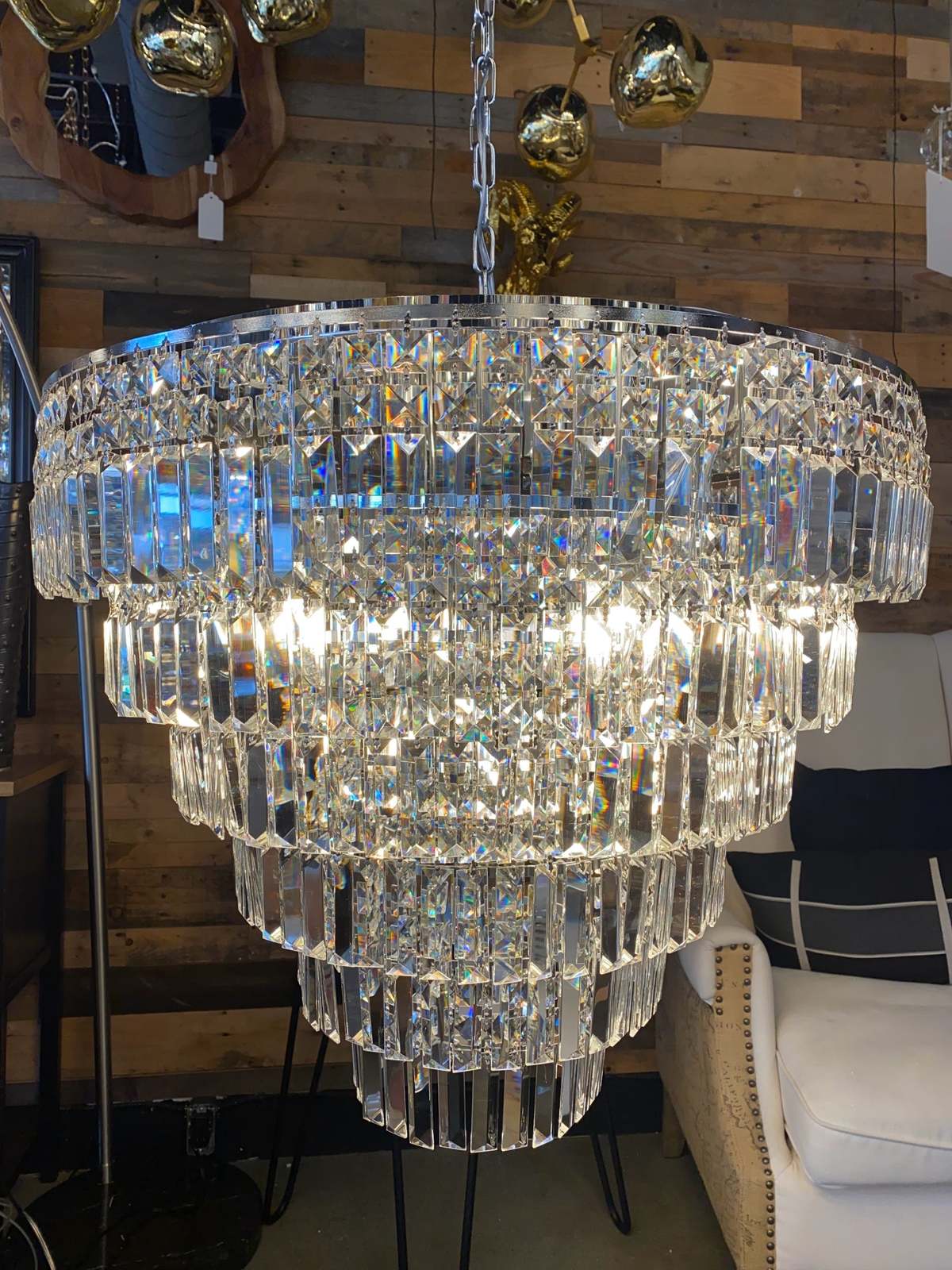 - 6 layers of elongated prism drops offer a livable luxury feel.