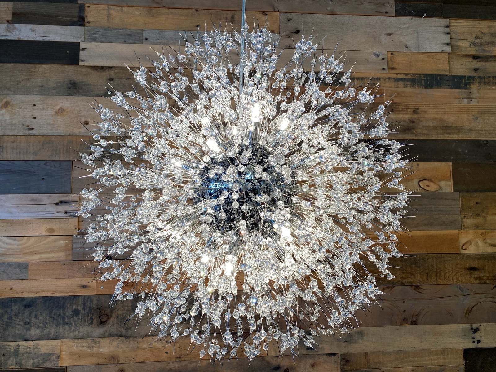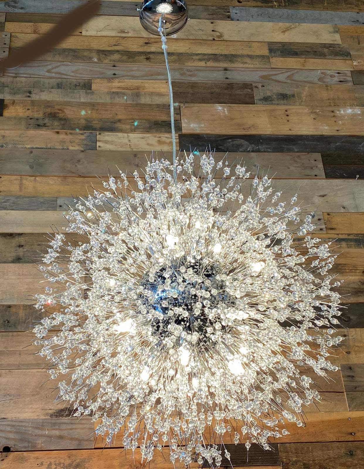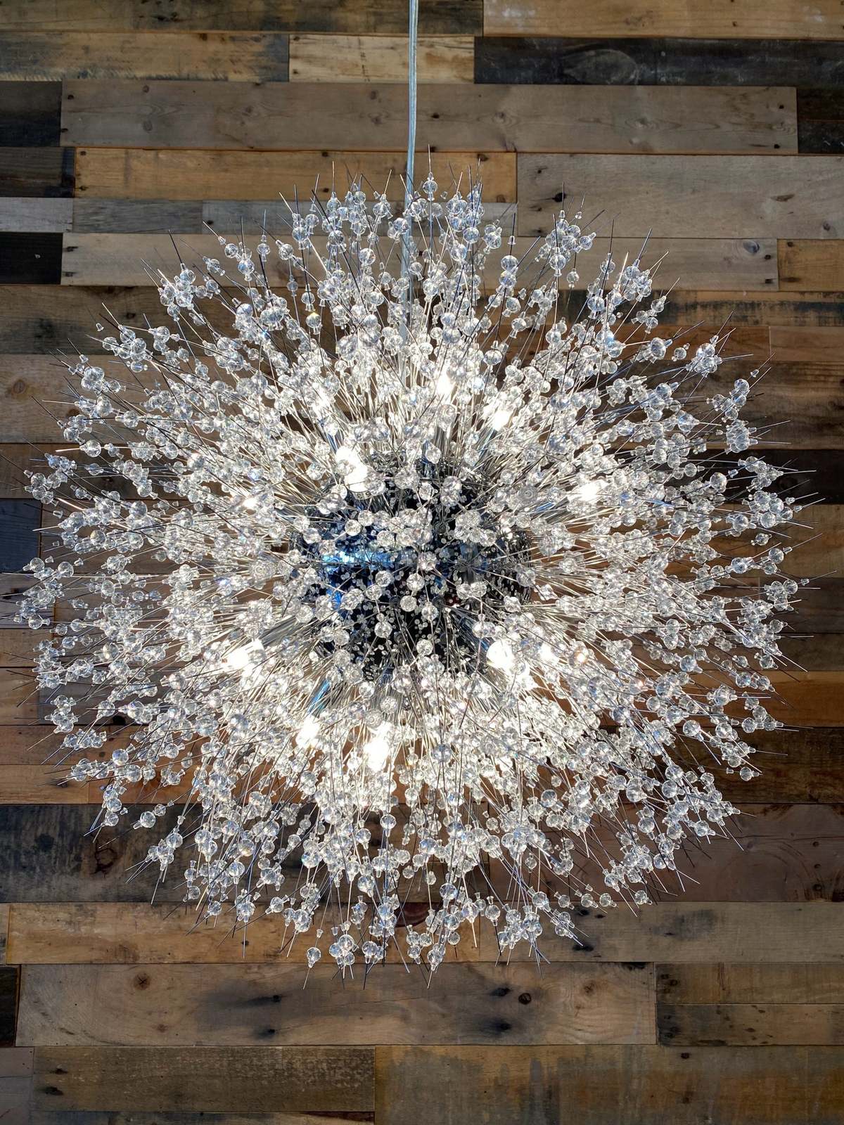 - Unique Crystal light Design: unique style chandelier is composed of multiple crystals and features Chrome finish and crystal is shiny, never to chip, fade, or tarnish. crystal home decor can give your room the glam touch it needed and make it easy to pair with any of your existing decors. The diamond starry design gives a beautiful and luxurious visual enjoyment, the quiet stars flash with a bright light, shaped like a glowing dandelion and firework.
