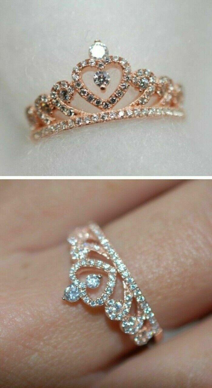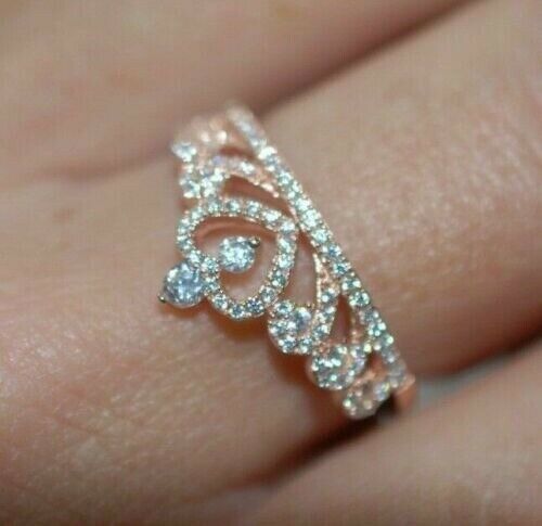 0.70Ctw Round Diamond 14K Rose Gold Finish Crown Princess Ring, Engagement Ring