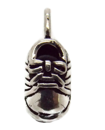 .925 STERLING SILVER BABY SHOE CHARM. CHARM IS 100% HANDMADE AND MANUFACTURED BY US. IT HAS AN ANTIQUE FINISH, WE HAVE BEEN IN THE JEWELRY BUSINESS FOR MORE THAN 30 YEARS. PLEASE JUDGE BY THE PICTURES. IF ANY QUESTIONS FEEL FREE TO ASK.
