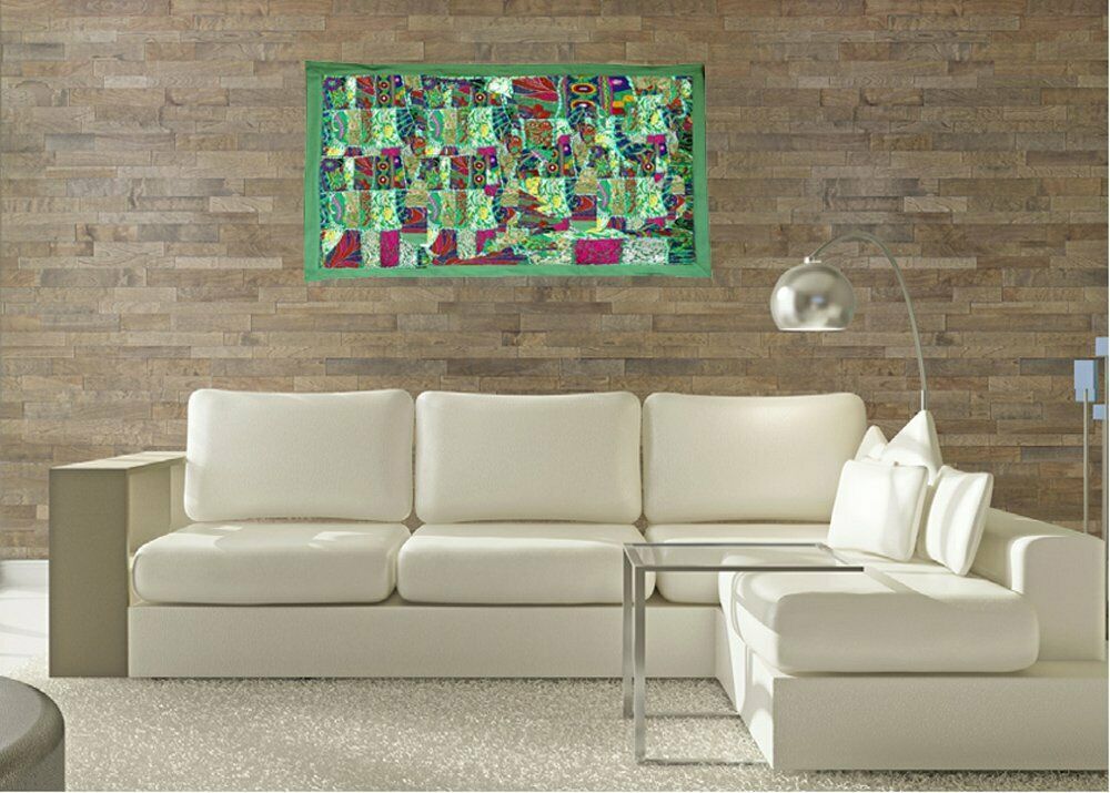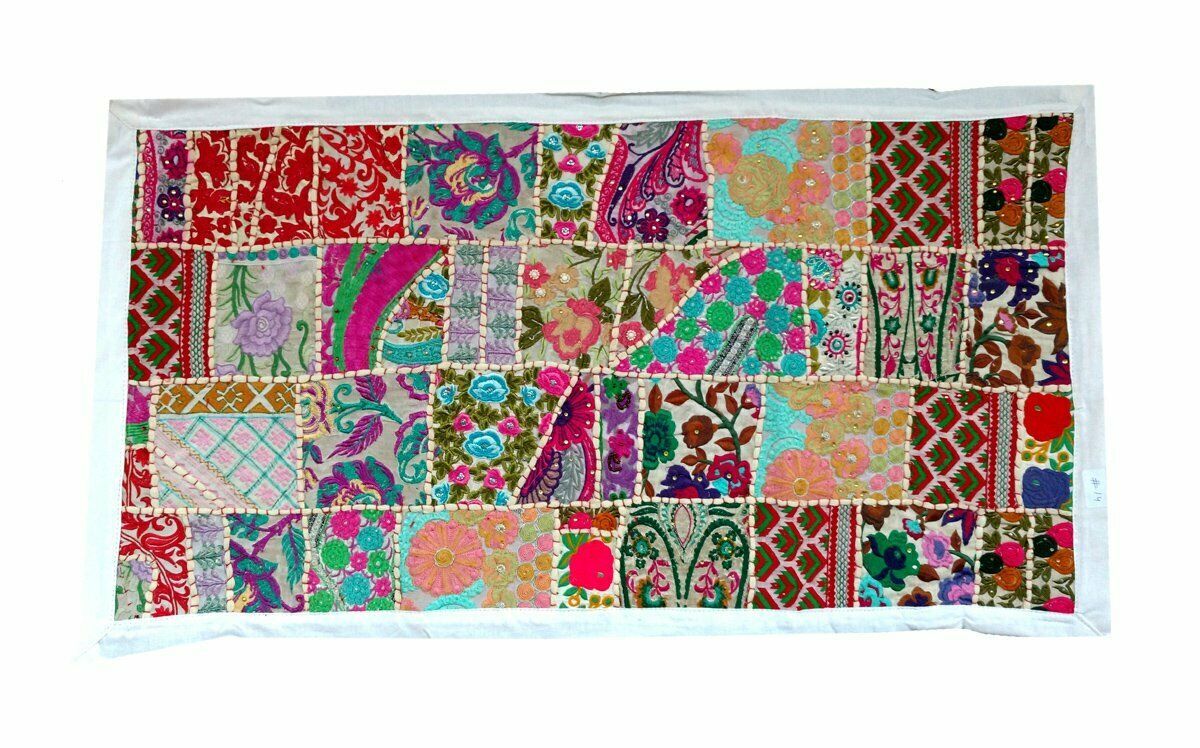 This tapestry is made by mix-fabrics using patchwork from vintage wedding saris and Indian traditional dresses. Patches from all these have been harmoniously brought together to create this masterpiece. Any slight imperfection lends a unique character to the tapestry/runner. We recommend dry-clean only for care and maintenance. Hand embroidery and bead work are quite delicate. These can be used as home wall art , gardern wall art,outdoor wall art, hanging wall art. This type of tapesry is also f