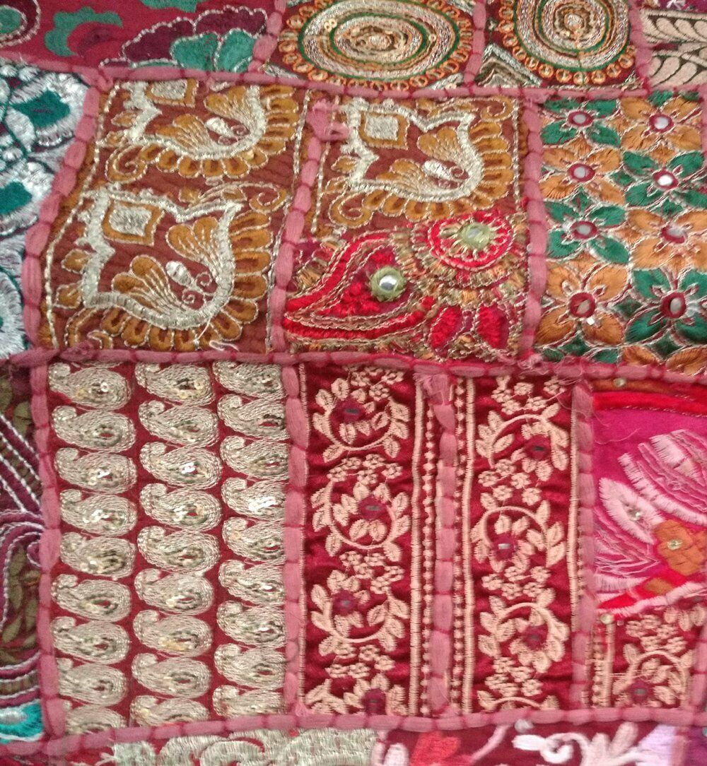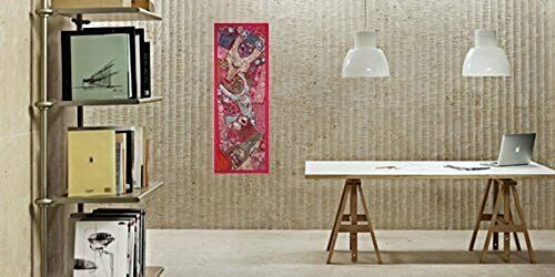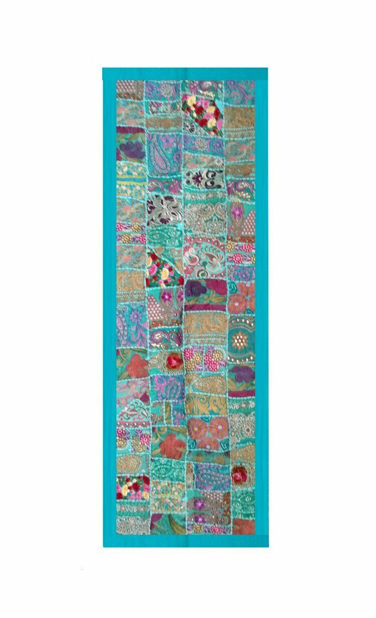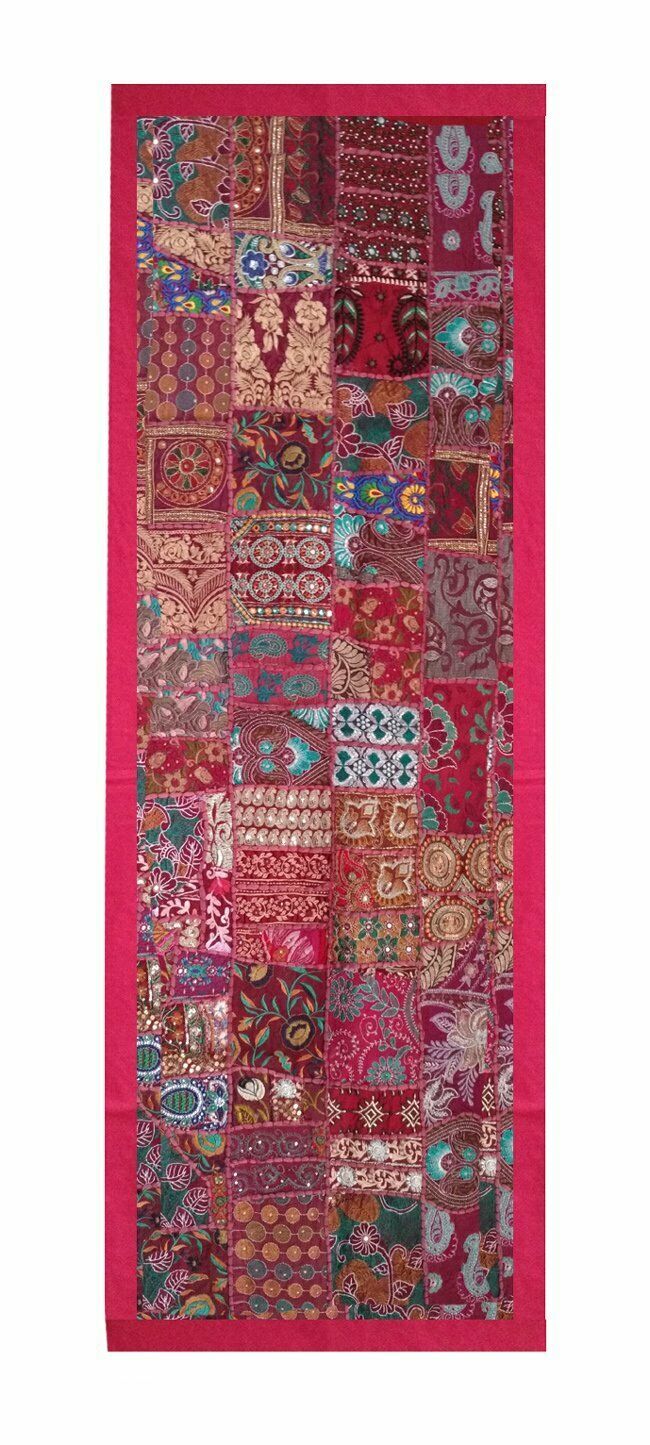 This tapestry is made by mix-fabrics using patchwork from vintage wedding saris and Indian traditional dresses. Patches from all these have been harmoniously brought together to create this masterpiece. Any slight imperfection lends a unique character to the tapestry/runner. We recommend dry-clean only for care and maintenance. Hand embroidery and bead work are quite delicate. These can be used as home wall art , gardern wall art,outdoor wall art, hanging wall art. This type of tapesry is also f