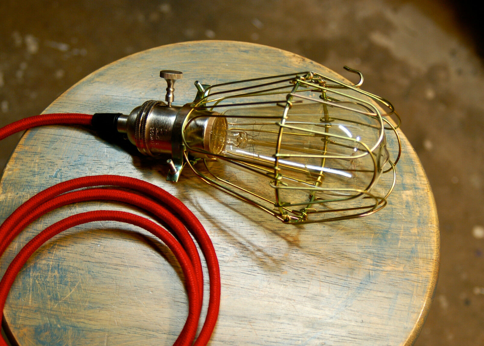 Brass Wire Bulb Cage, Clamp On Lamp Guard, Vintage Trouble Lights - Industrial