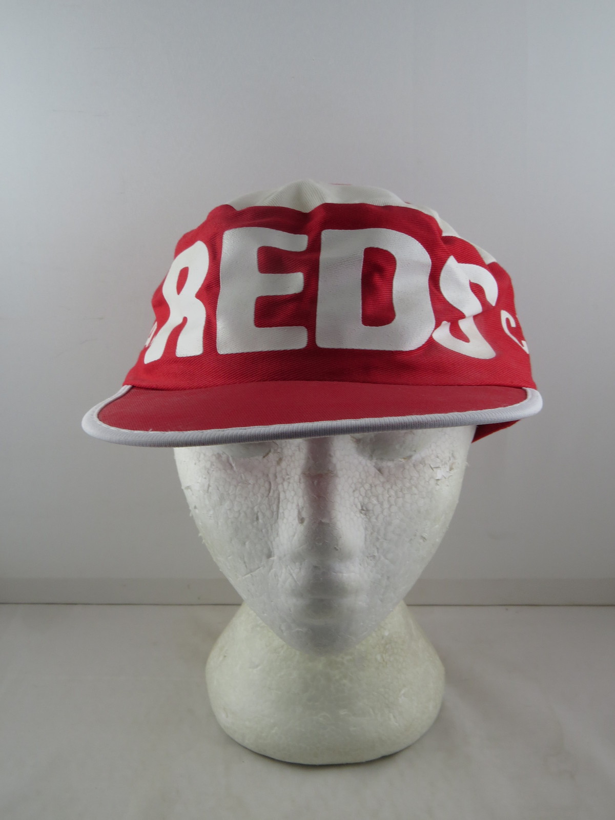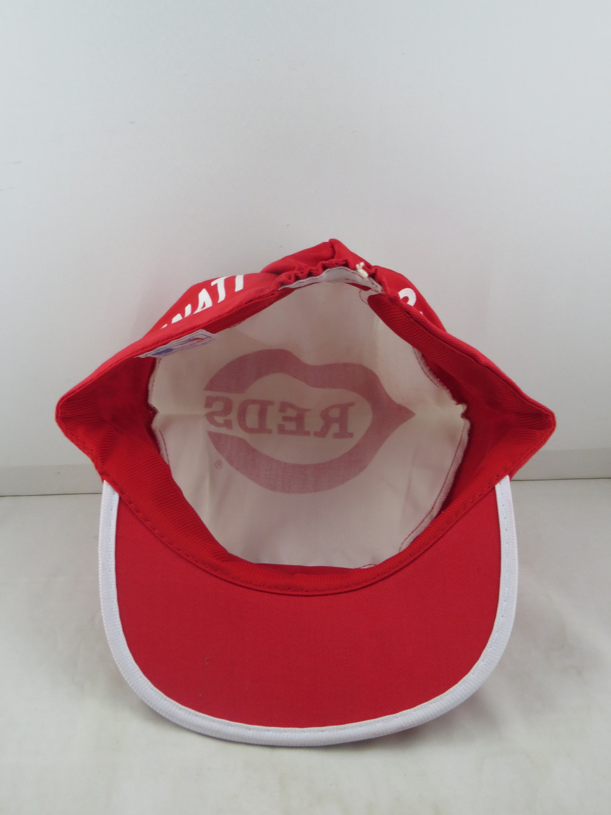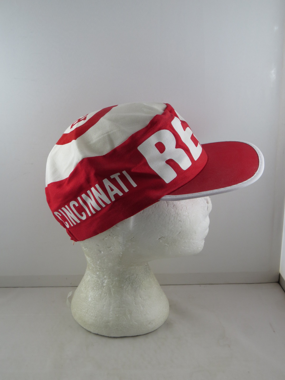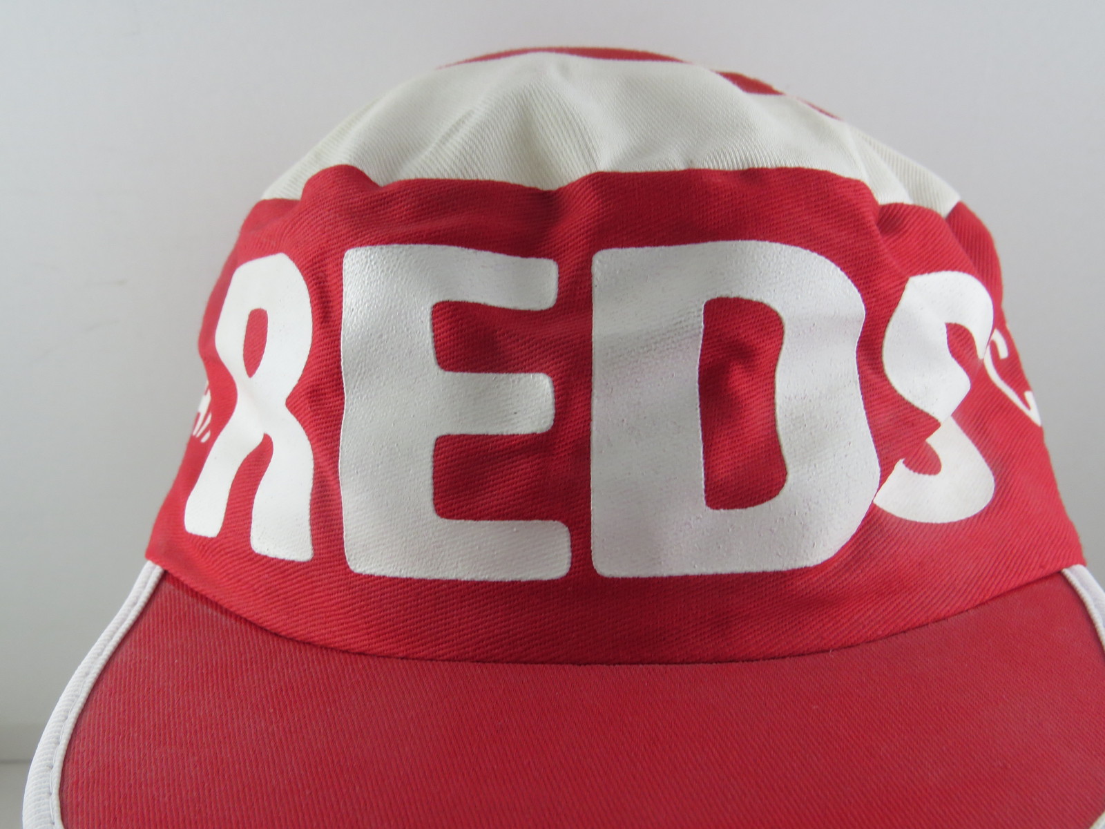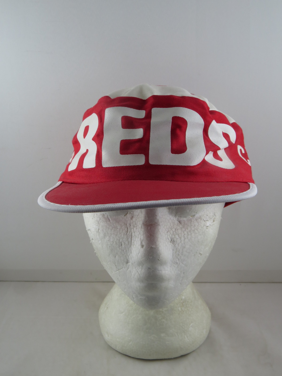 Up for sale is a vintage Cincinnati Reds hat. It has Reds screened on the front with Cincinnati screened on either side of the hat. The top of hat has the Reds C logo screened on. What a great vintage hat do not miss out on it.