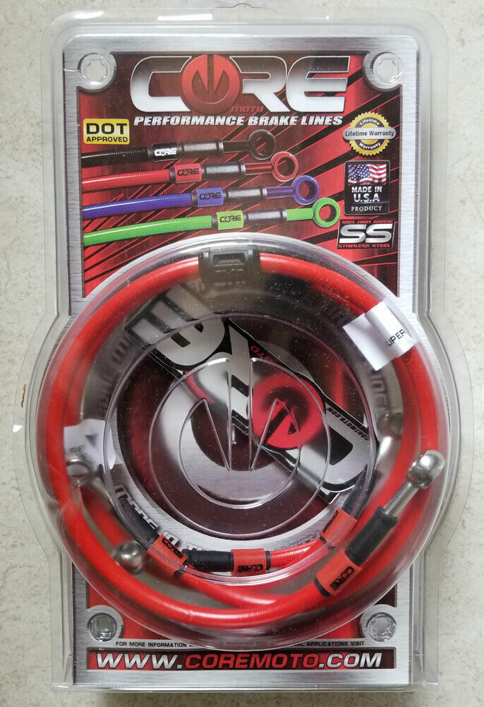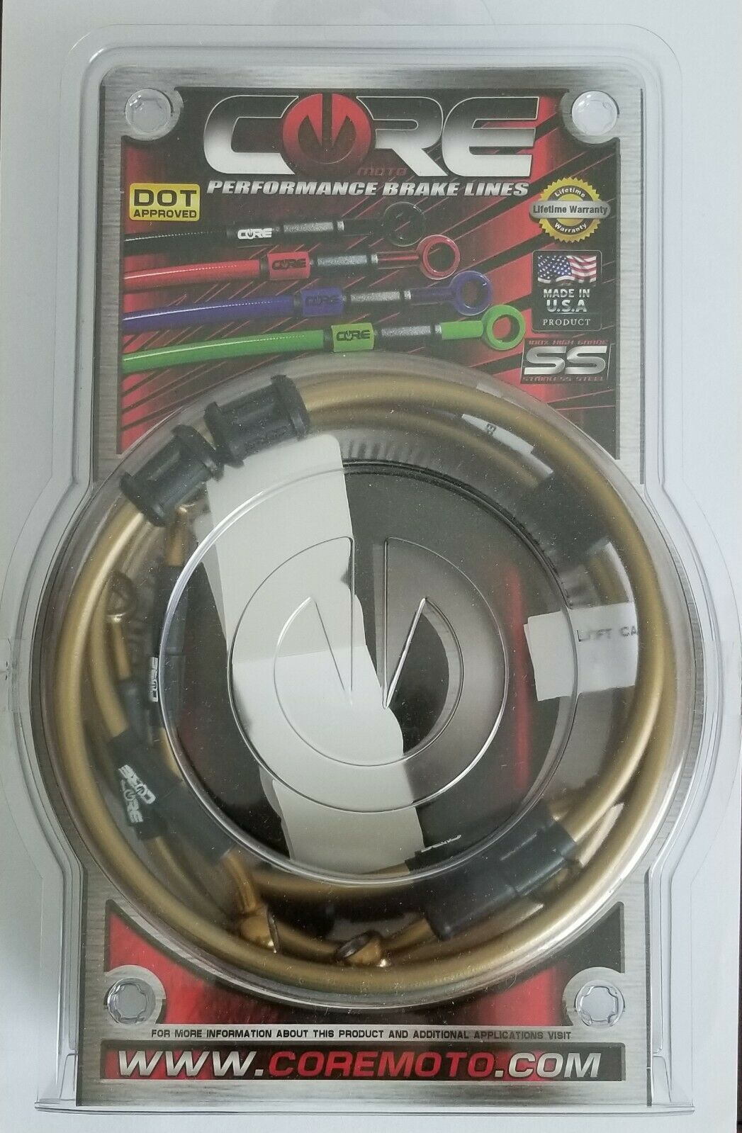 Core Moto Brake lines with proper lengths, banjo bend angles, mounting grommets and colours according to your model and order details