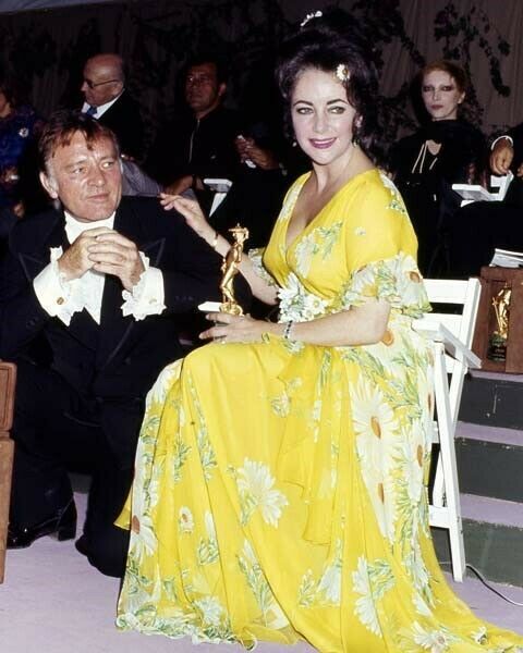 Elizabeth Taylor in yellow flower dress with Richard Burton in tuxedo 11x17 post