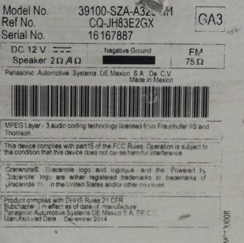 12 13 14 15 HONDA PILOT AM/FM RADIO CD PLAYER RECEIVER OEM