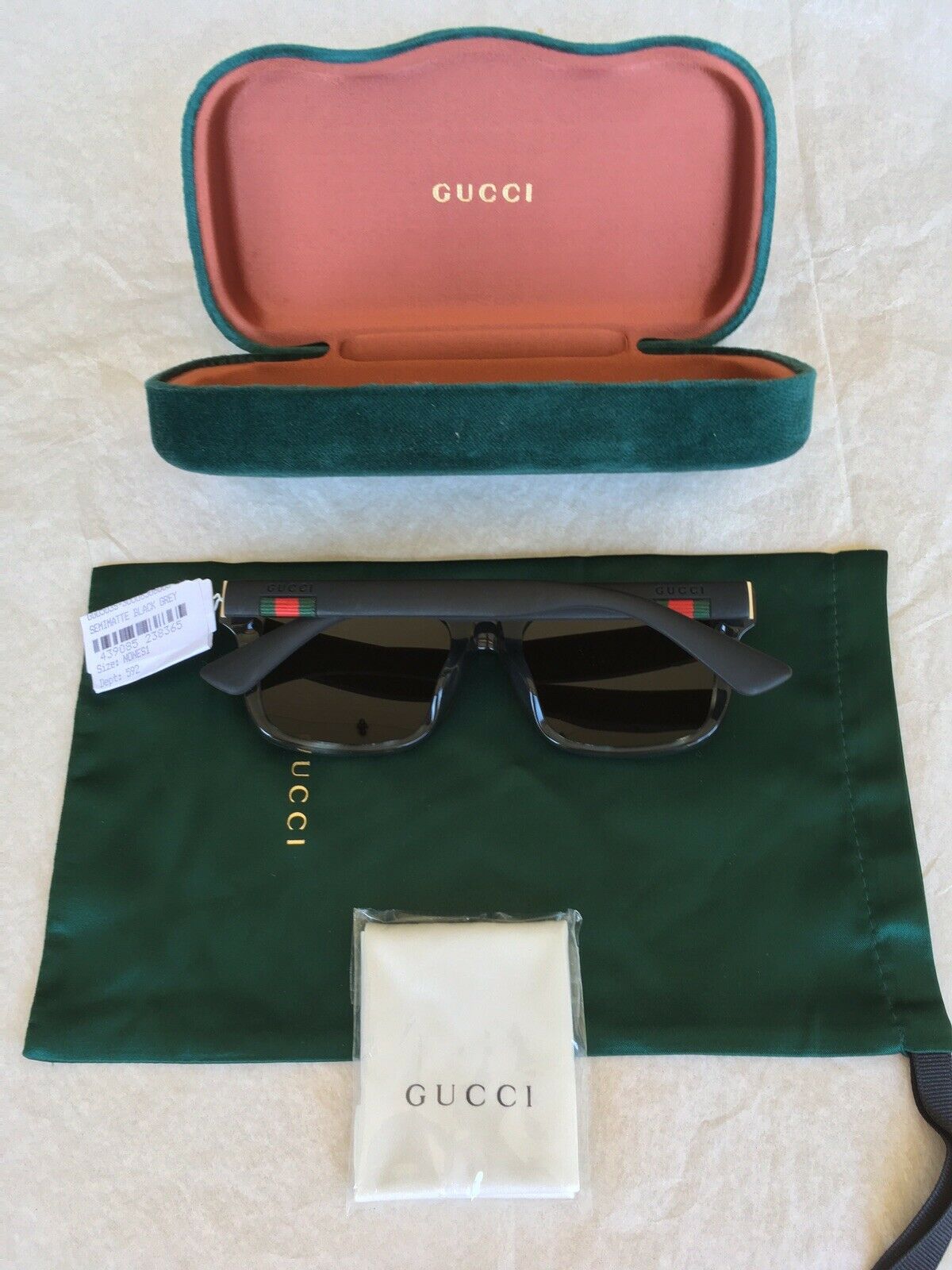 New Gucci GG0008SA 004 54mm Rectangle Wayfarer Grey/Black/Brown Sunglasses. Condition is New with tags.