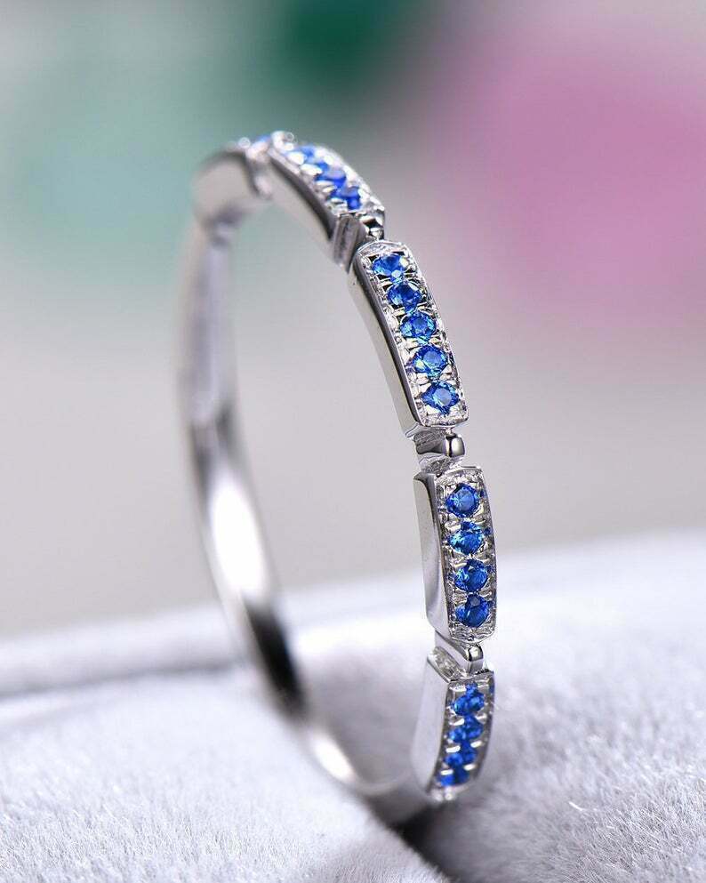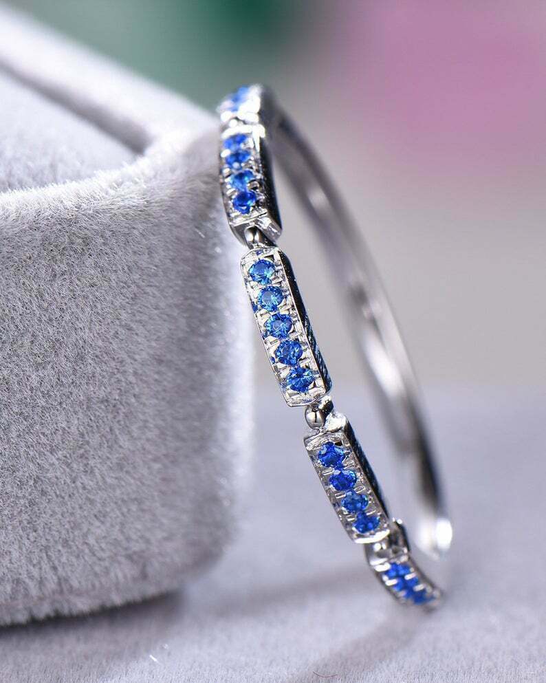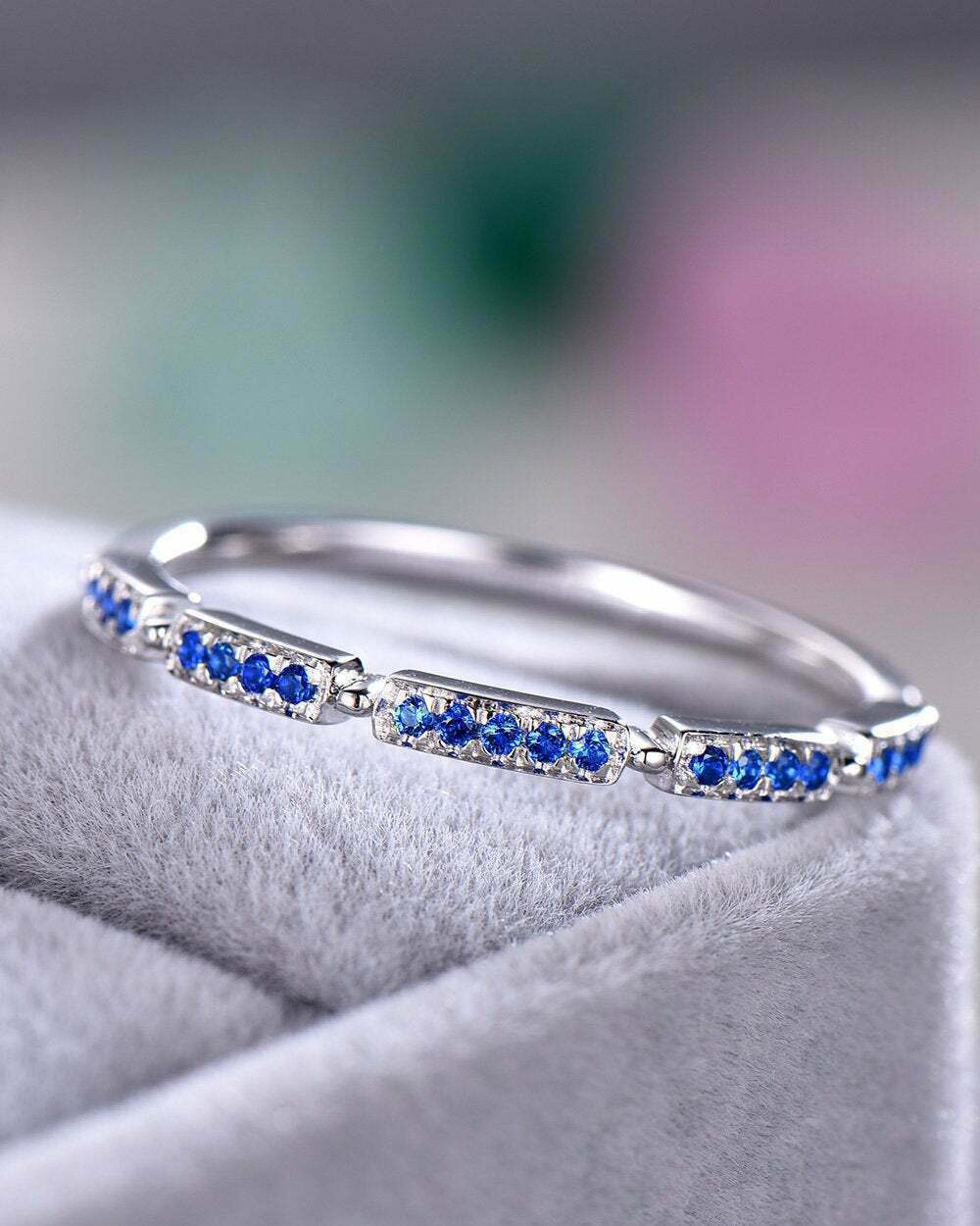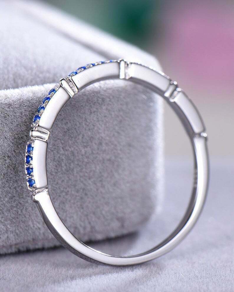 14K White Gold Finish 0.50Ct Round Cut Blue Sapphire Half Eternity Wedding Band