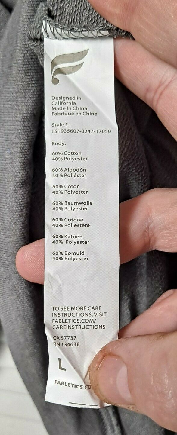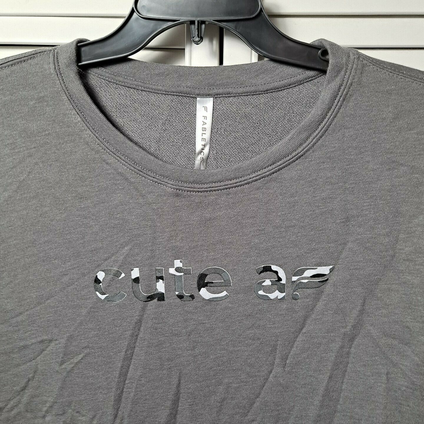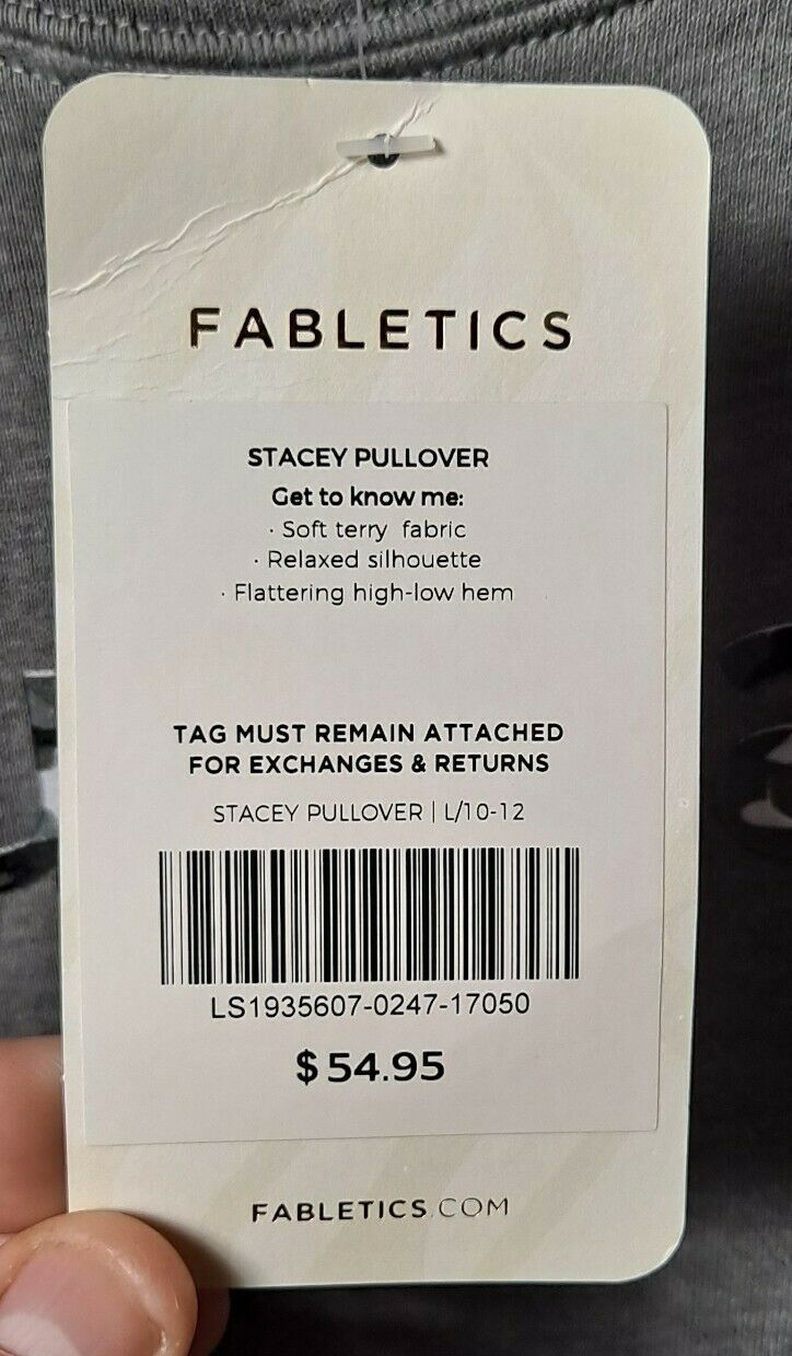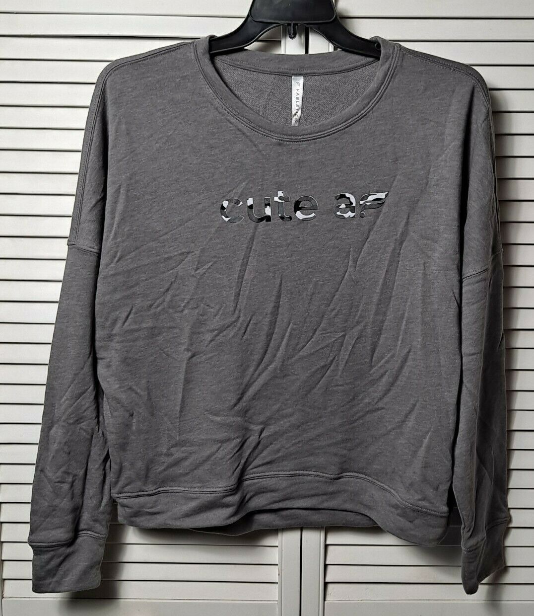 Fabletics Stacey Long Sleeve Grey Pullover "cute af" Size L Brand New with Tags