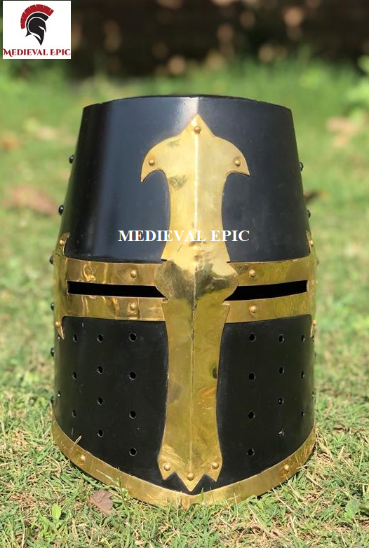 This helmet gives you complete protection and a unique look.Crusader Helmet refers to the type of helmet that was popularly worn by knights and other men at arms in the Late Medieval and Renaissance eras. It was also used by some heavily armored, pistol-armed into the mid 17th century. It is a fully head enclosing helmet. This helmet covers the head and had only very small openings for the eyes and mouth, offered vastly superior protection than other helmets. This helmet will make you remember history of our great rulers. It is perfectly match up with your Halloween warrior outfit.PREMIUM QUALITY MEDIEVAL CRUSADER HELMET : A Great part of Crusader Era is this Crusades Helmet . It was an immense part of Crusader Knight Costumes and Outfit in Medieval War Time . So Buy it with confidence and Feel the Fire of a Crusader.